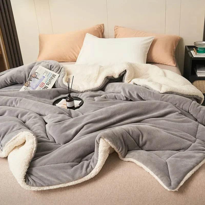 Introducing the Marion Blanket, your new go-to cozy throw for enhancing relaxation. This blanket features one side crafted from ultra-soft polyester and the other adorned with plush imitation lambswool fleece, ensuring a blend of luxurious comfort and remarkable softness. Its thick design delivers optimal warmth, making it an ideal companion for chilly nights and cozy winter snuggles.
