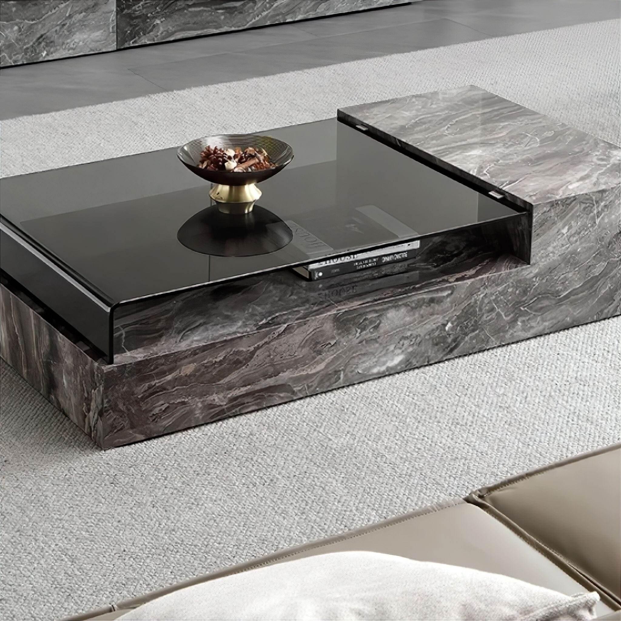 Designed with a unique glass top storage shelf, it provides the perfect spot for showcasing cherished decor items or conveniently storing everyday essentials. The striking contrast between the smooth marble and the sleek glass not only captivates the eye but also enhances the overall aesthetic of your home.