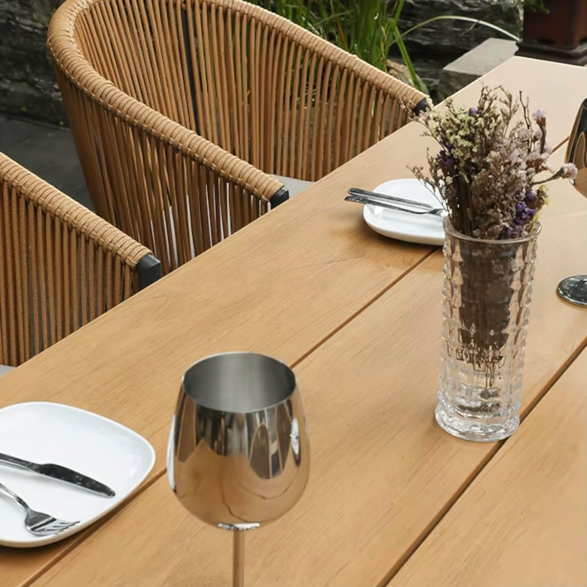 The Elena Outdoor Furniture Collection seamlessly combines durability and natural charm, making it a captivating addition to any outdoor area. Crafted with a solid teak timber top that exudes warmth and timeless elegance, this collection is designed to enhance your outdoor living experience. Its robust metal base provides dependable stability and lasting durability.