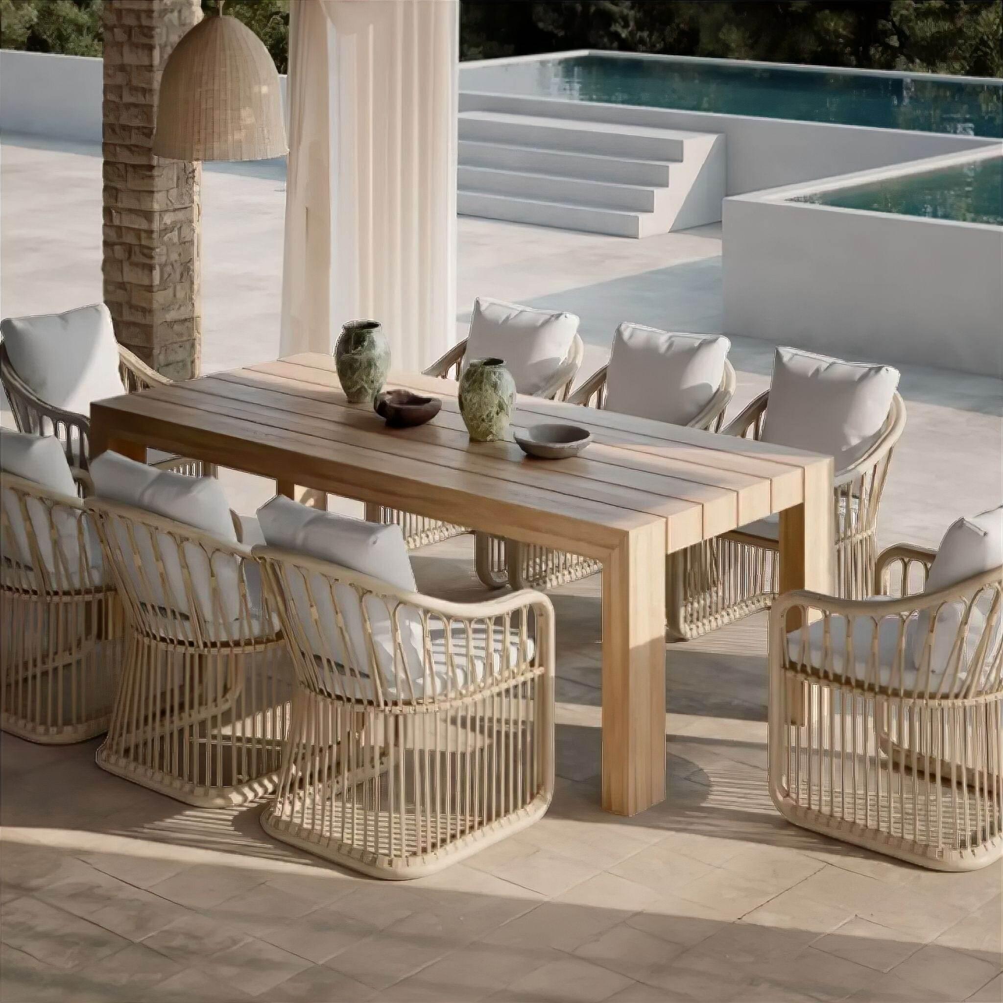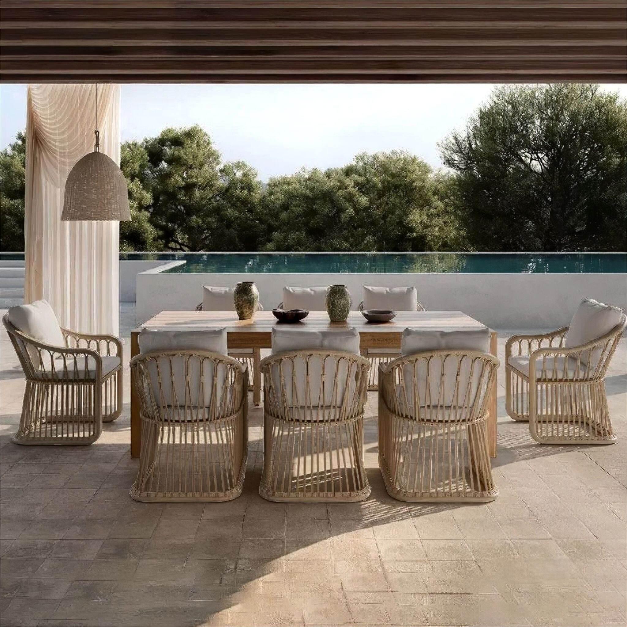 Transform your outdoor living space with the Melina Outdoor Furniture Collection, thoughtfully designed to blend modern aesthetics with enduring craftsmanship. This elegant collection includes sleek dining chairs, inviting sofa chairs, and spacious sofas, all skillfully crafted from high-quality rattan. Its contemporary design enhances any outdoor setting, providing a perfect mix of style and comfort.