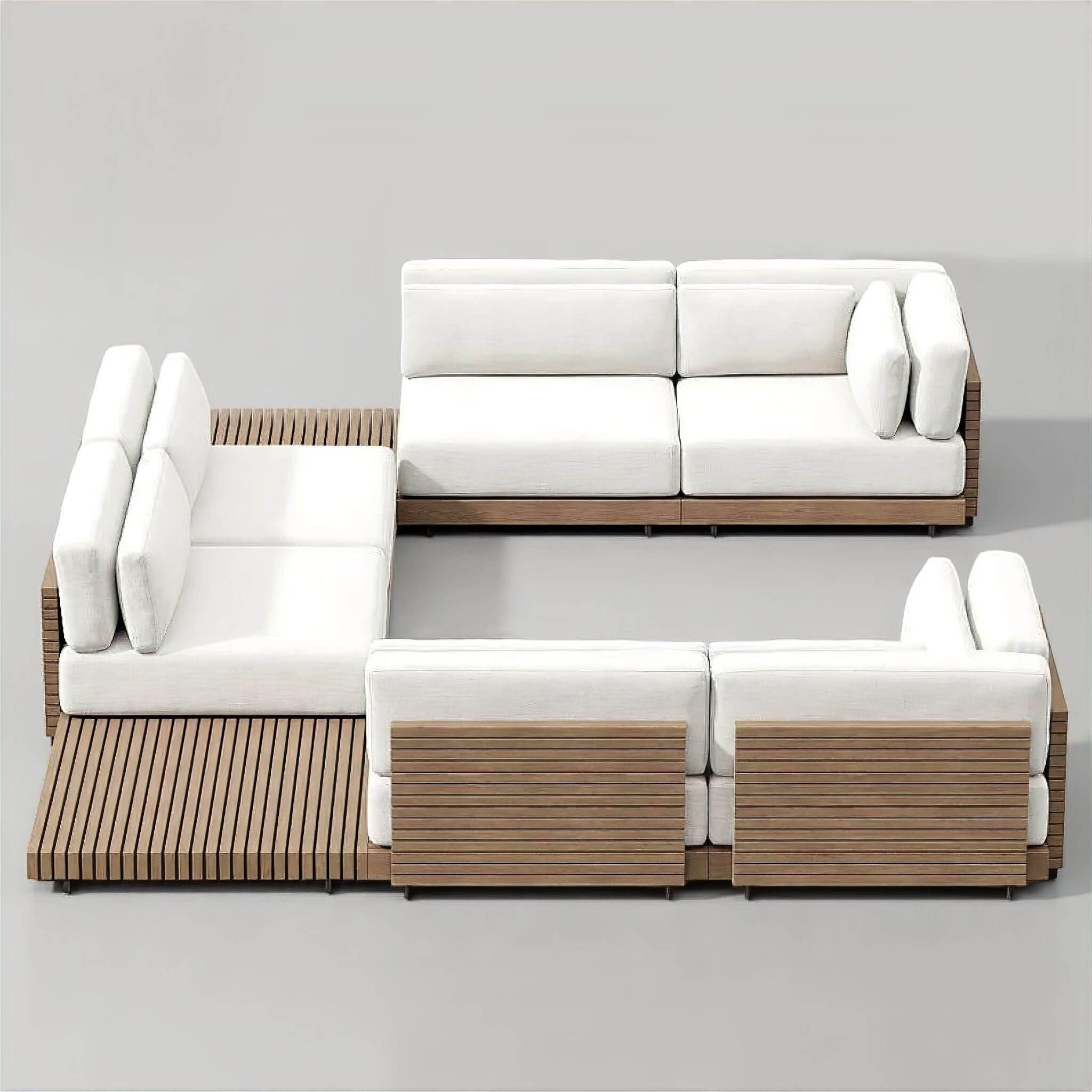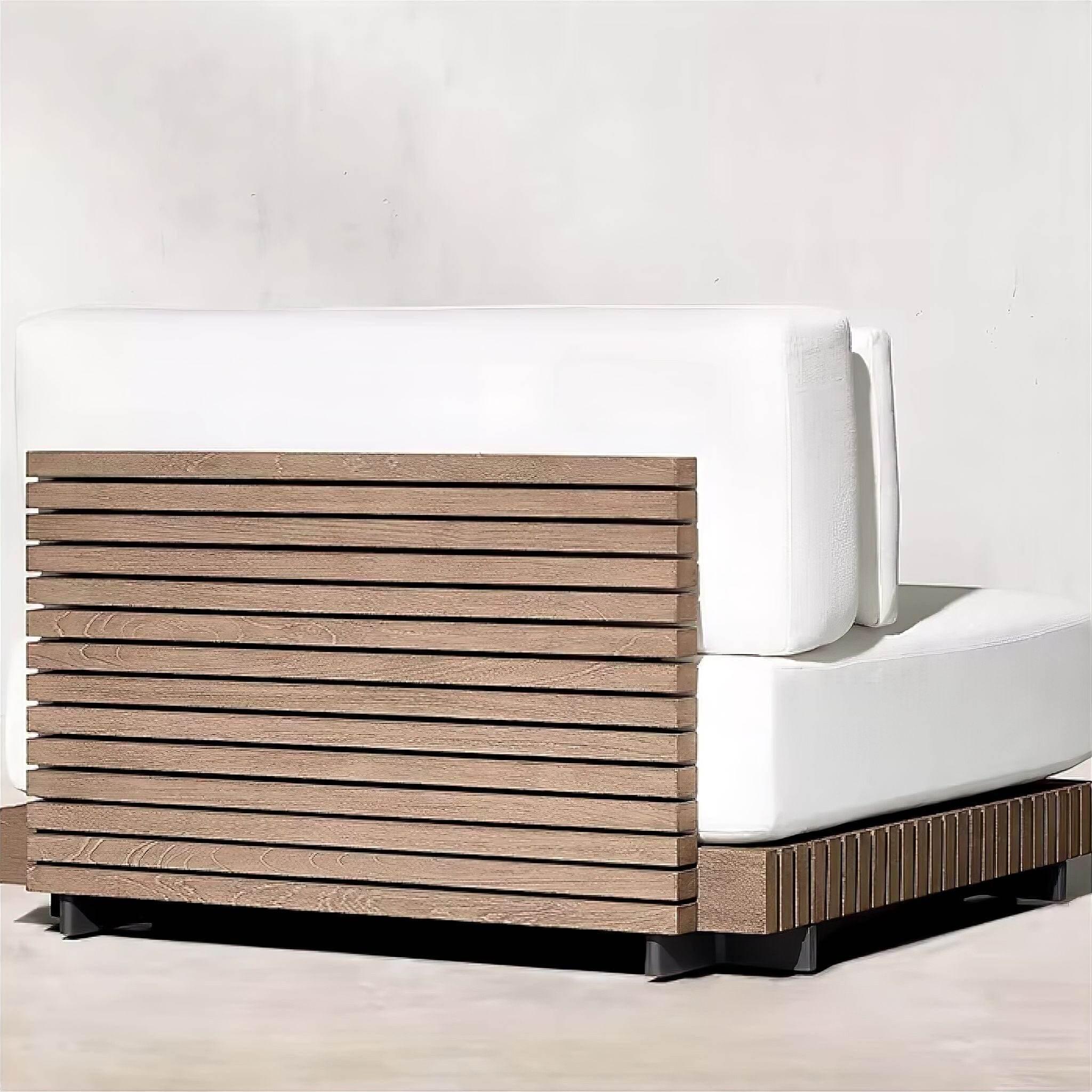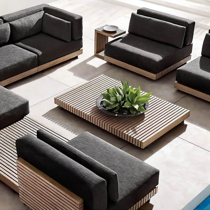 The Hortense Outdoor Furniture Collection features a striking blend of white and black tones, delivering a contemporary and refined look that enhances any patio or outdoor space. Crafted from high-quality aged teak timber, known for its durability and beauty over an impressive history of more than 70 years, this collection is designed to stand the test of time while adding elegance to your surroundings.