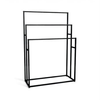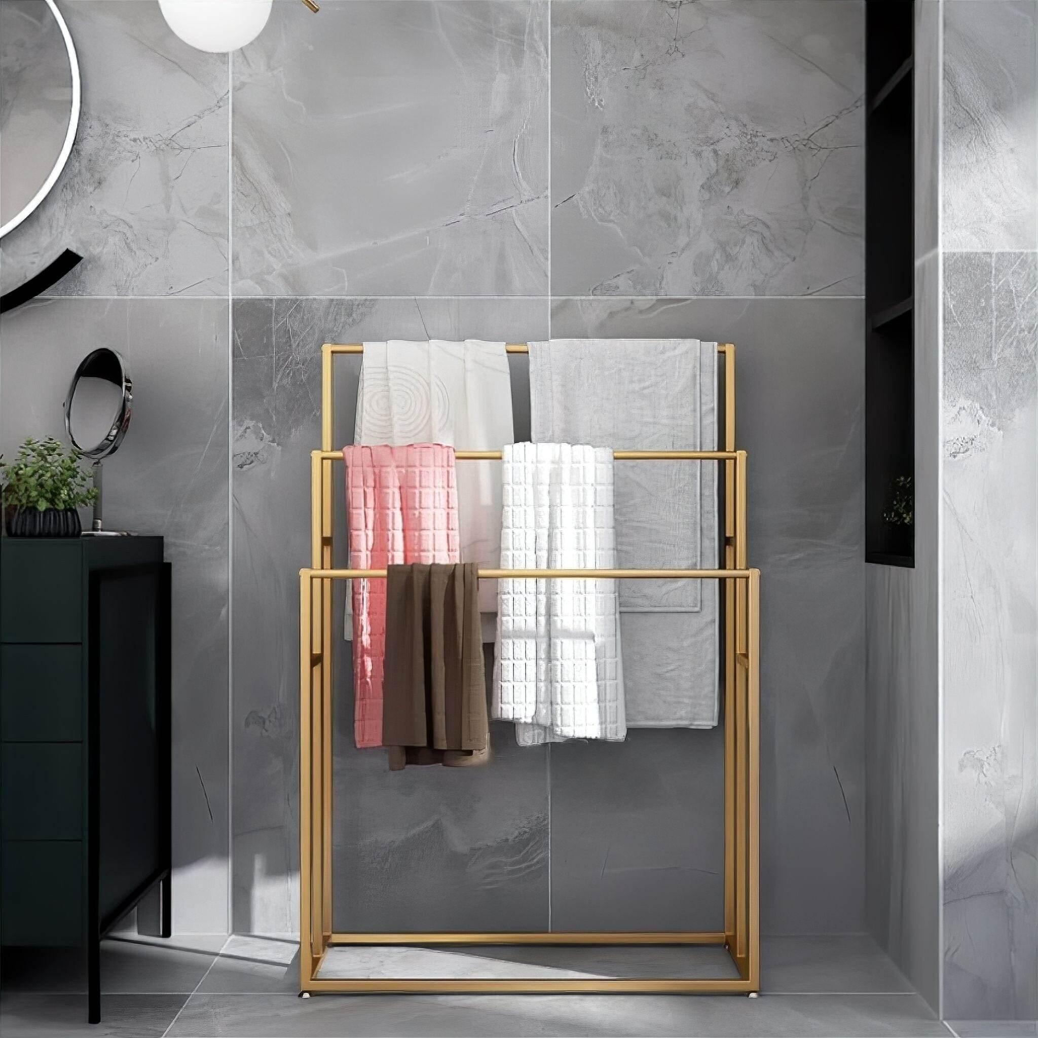 Verwandeln Sie Ihr Badezimmer mit dem Nadine Badetuchhalter – einem eleganten und funktionalen Organizer, der Ihre Handtücher übersichtlich und griffbereit hält. Dieser moderne Handtuchhalter bietet drei Ebenen zum Aufhängen, wobei jede Ebene etwas tiefer liegt als die darüberliegende, was einen auffälligen optischen Effekt erzeugt. Das robuste und minimalistische Design vereint Funktionalität und Eleganz harmonisch und bereichert Ihren Alltag, während es die Ästhetik Ihres Badezimmers aufwertet. Mit dem Nadine Badetuchhalter verleihen Sie Ihrem Zuhause einen raffinierten, modernen Touch und sorgen gleichzeitig dafür, dass Ihre Handtücher stets geordnet und griffbereit sind. Entdecken Sie praktische Lösungen für Ihren Wohnraum bei Decor [http://www.decorofficial.com/].