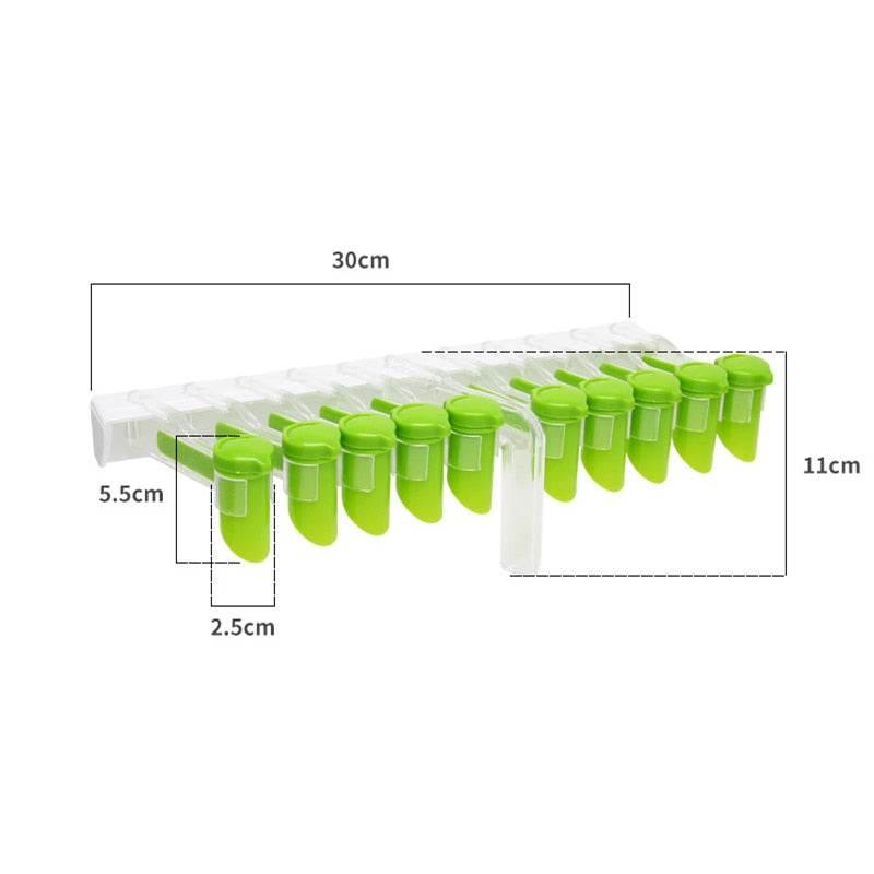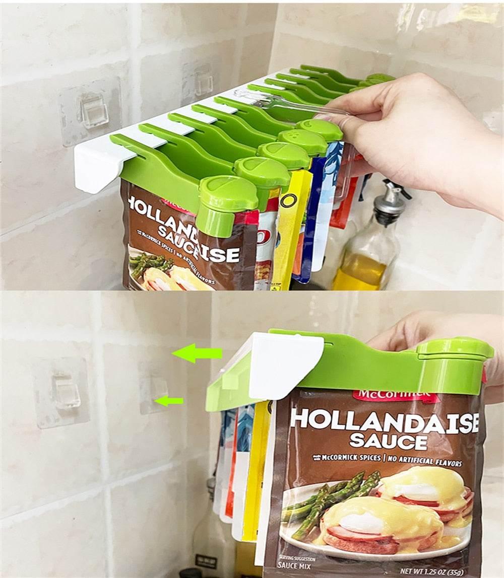 Mit 10 oder 6 ordentlich angeordneten Clips sorgt dieser Organizer dafür, dass Ihre Küchenutensilien ordentlich und leicht zugänglich bleiben, sodass Ihr Kocherlebnis reibungsloser und angenehmer wird.