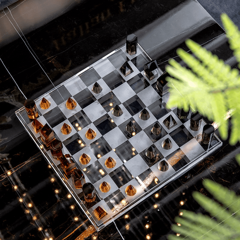 Geometrisches Schachbrett aus Kristall – Modernes dekoratives Spielset