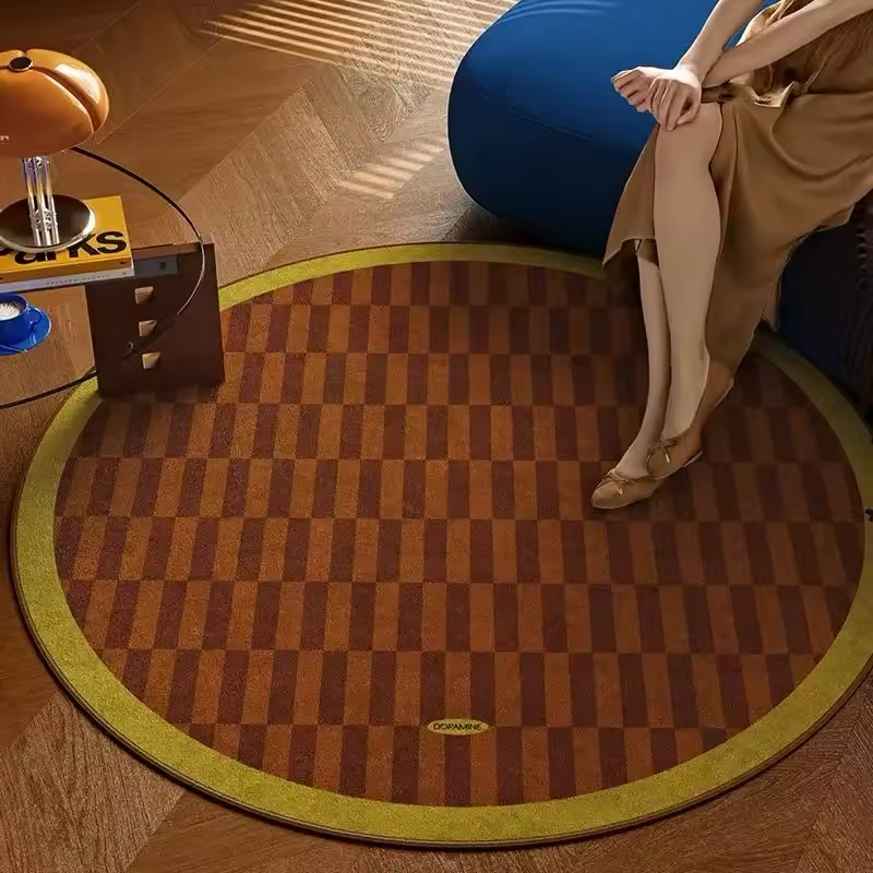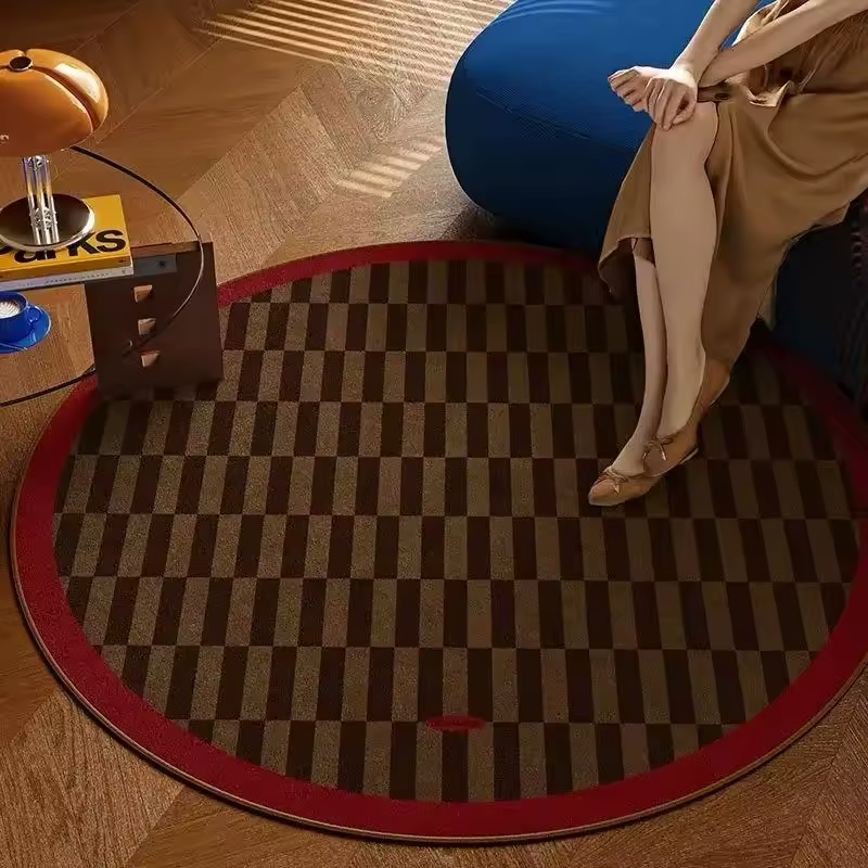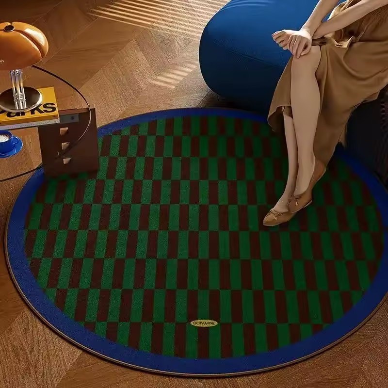Round Geometric Carpet Mat – Soft Checkerboard Floor Rug