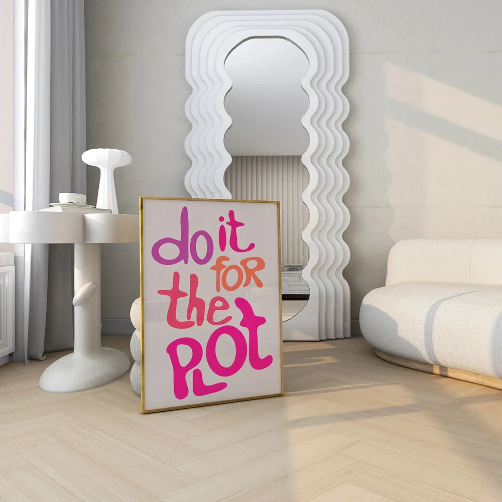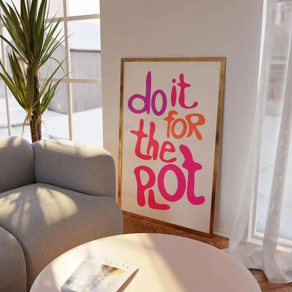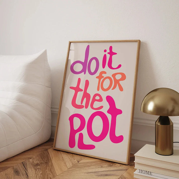 - Design : La phrase « Fais-le pour l'intrigue » est présentée dans une mise en page élégante et contemporaine, ajoutant à la fois du sens et un attrait esthétique à n'importe quelle pièce.