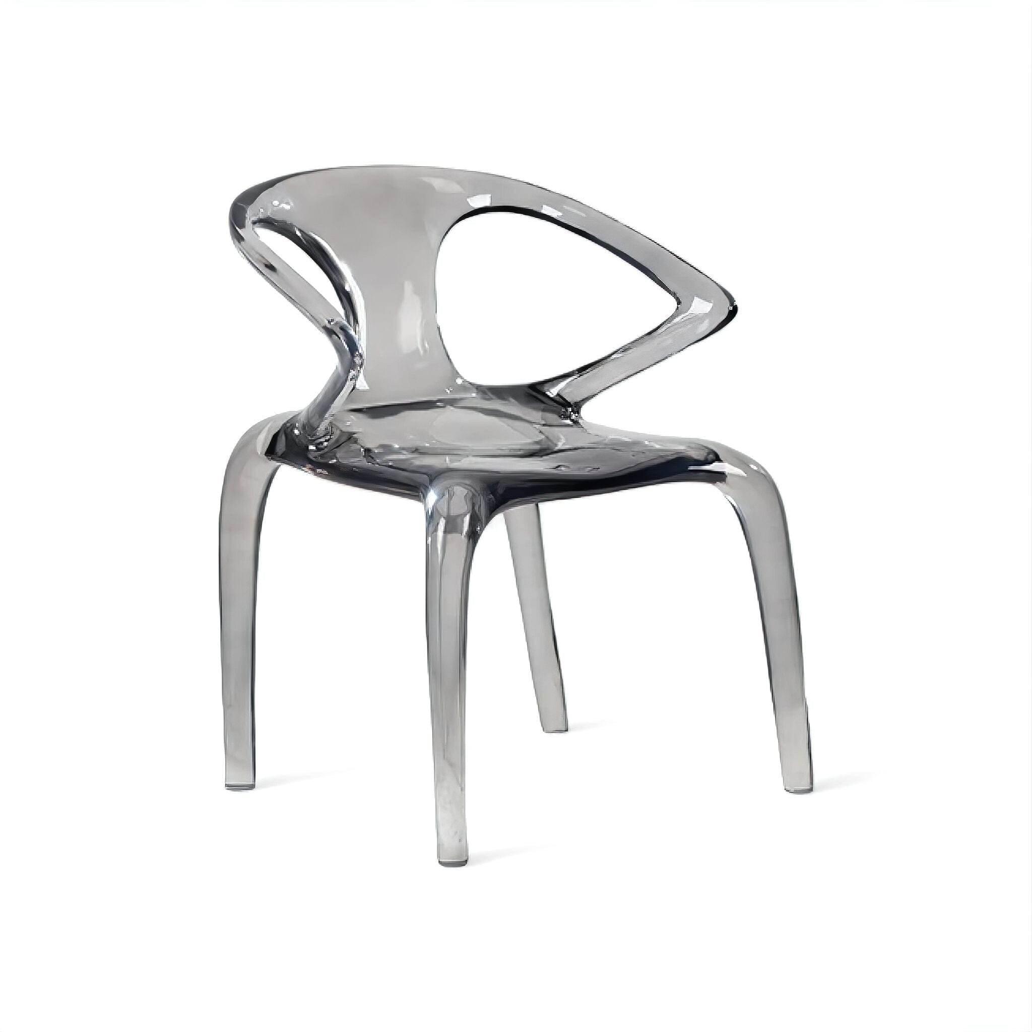 Entdecken Sie den Clarisse Esszimmerstuhl, ein außergewöhnliches Möbelstück, das mit seinem ultramodernen Design die traditionelle Essästhetik revolutioniert. Der Stuhl aus 100 % transluzentem Acryl besticht durch seine schlanke, transparente Form und strahlt zeitgenössische Eleganz aus.