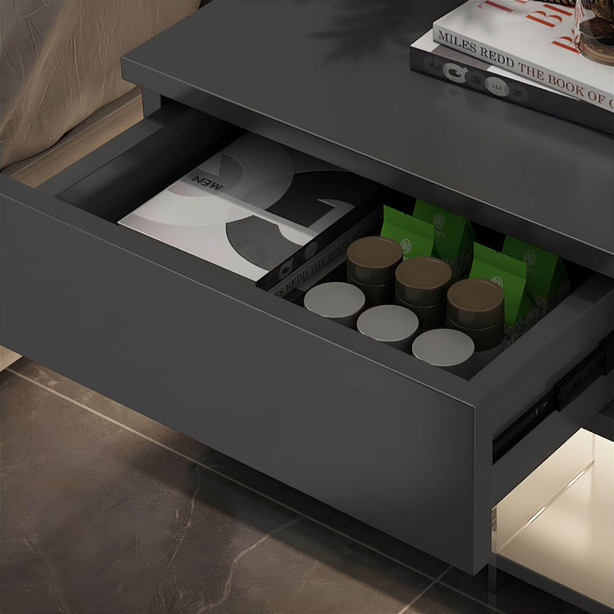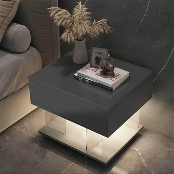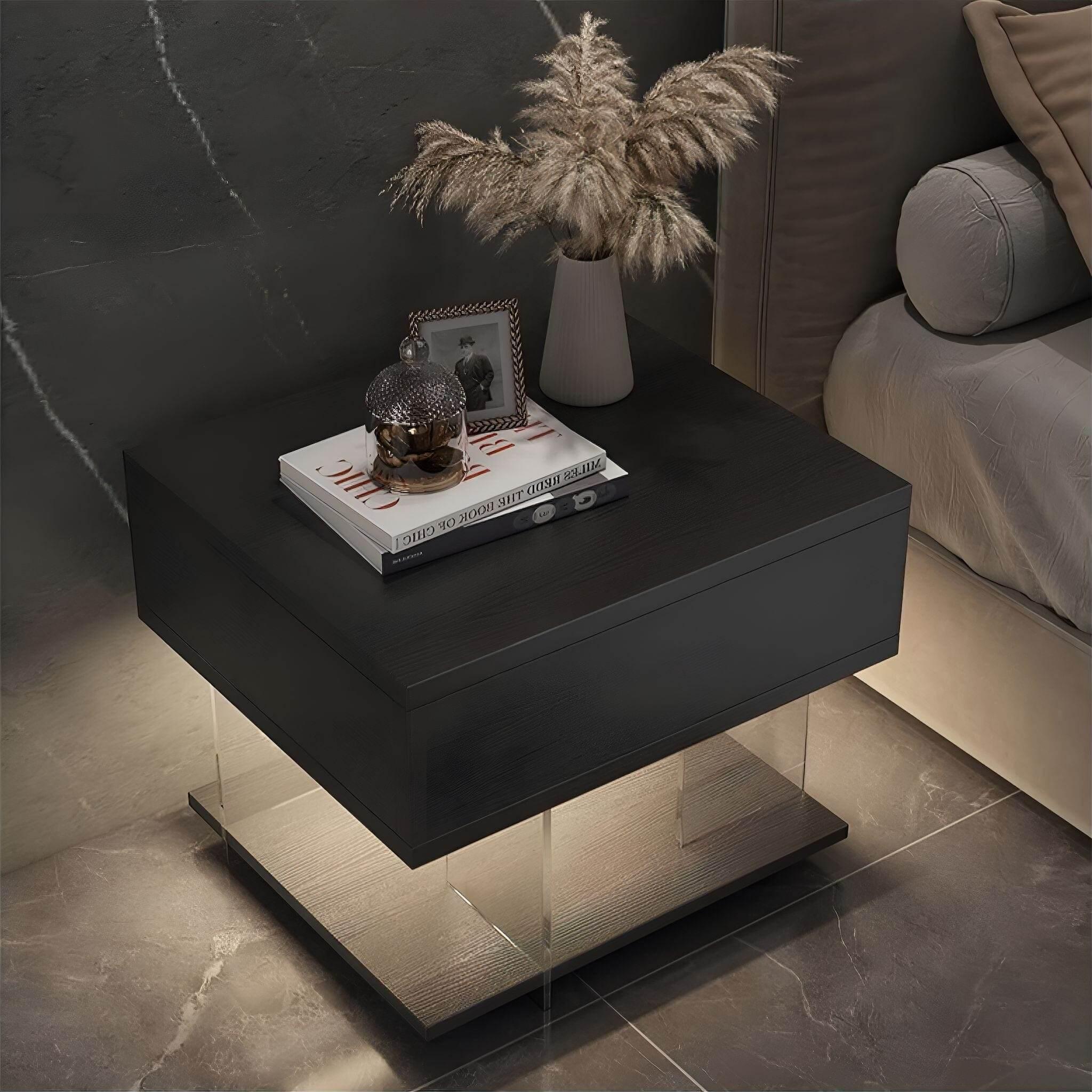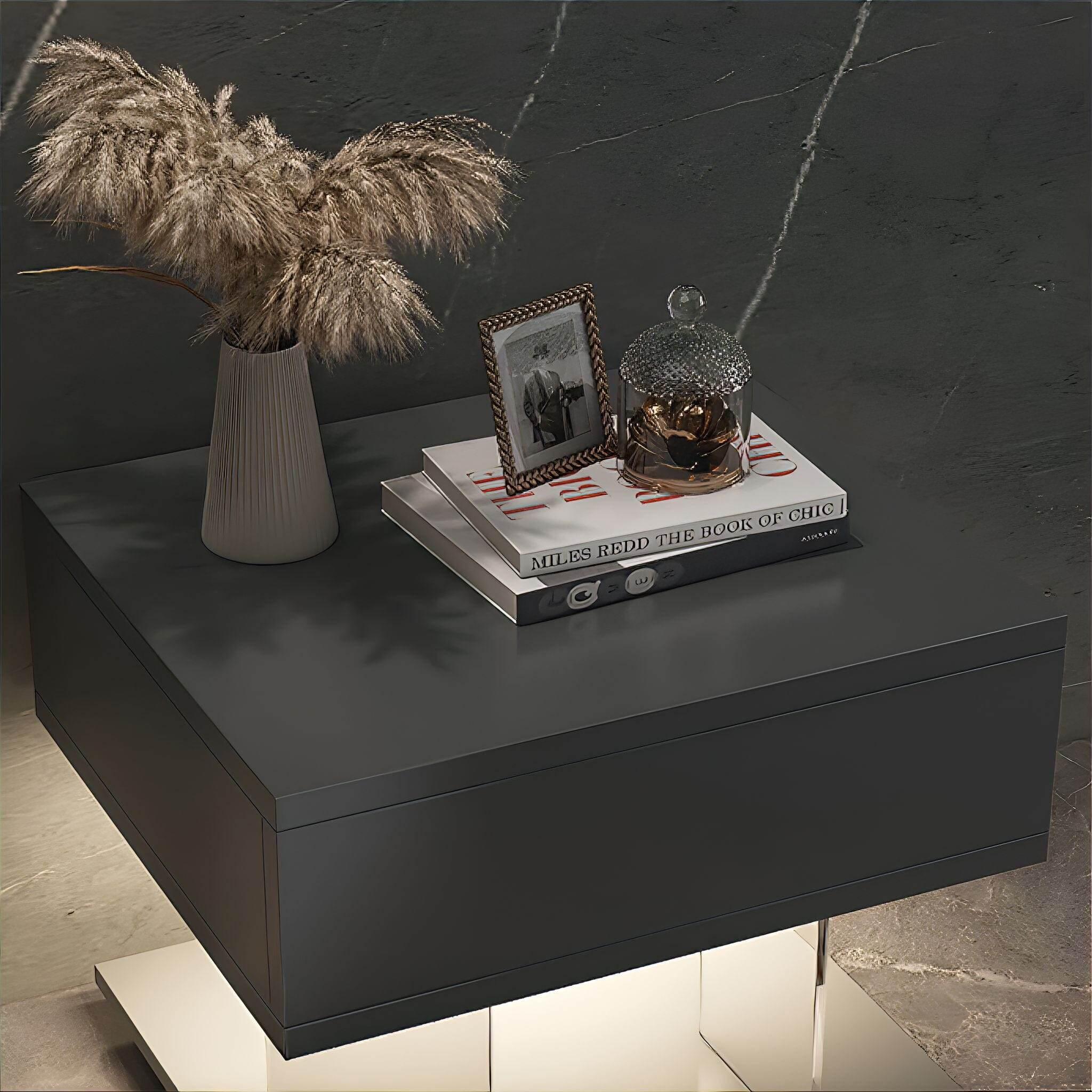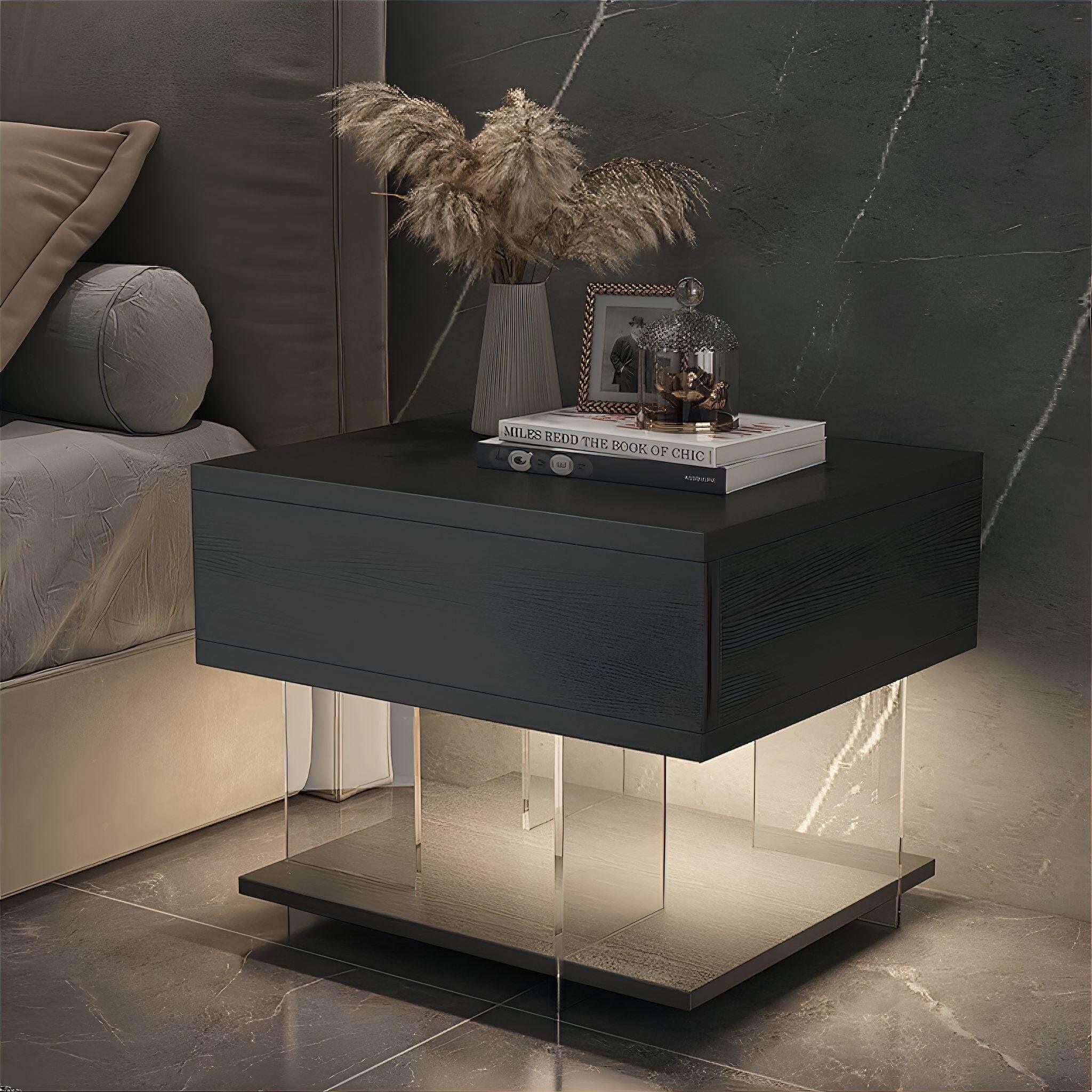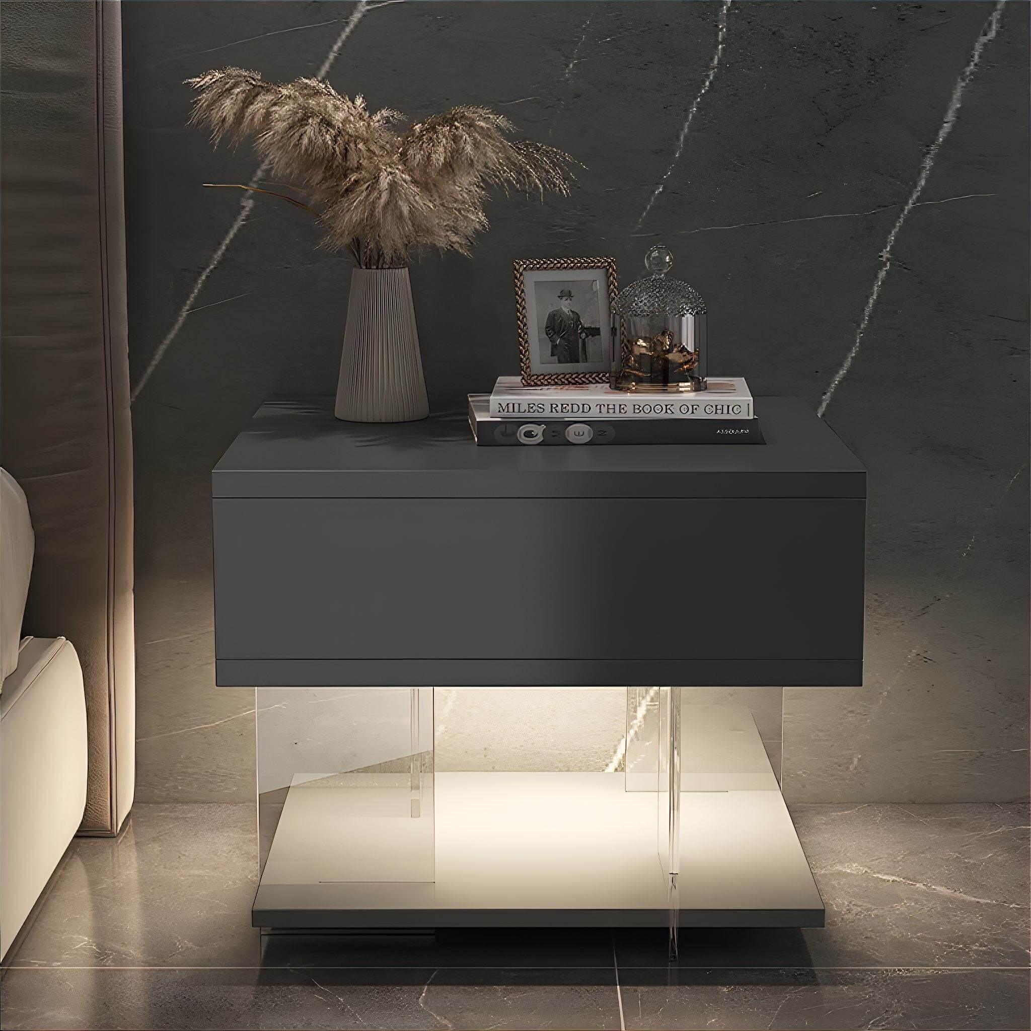 Verwandeln Sie Ihr Schlafzimmer mit dem ultramodernen Nachttisch Lise, einem stilvollen Nachttisch, der sowohl Stauraum als auch Ästhetik in Ihrem Raum schafft. Dieses moderne Möbelstück verfügt über sanfte LED-Beleuchtung und schafft eine beruhigende Atmosphäre, die Ihren Abend verschönert. Der durchdachte Nachttisch Lise vereint Eleganz und Funktionalität und bietet großzügigen, übersichtlichen Stauraum für Ihre wichtigsten Utensilien. Seine minimalistische Silhouette strahlt Raffinesse aus und passt perfekt zu jeder modernen Schlafzimmereinrichtung. Mit klaren Linien und innovativen Funktionen ist dieser Nachttisch mehr als nur ein Möbelstück – er repräsentiert die Evolution modernen Designs und bringt einen Hauch von Zukunft in Ihr Zuhause. Entdecken Sie praktische Lösungen für Ihren Wohnraum bei Decor [http://www.decorofficial.com/].