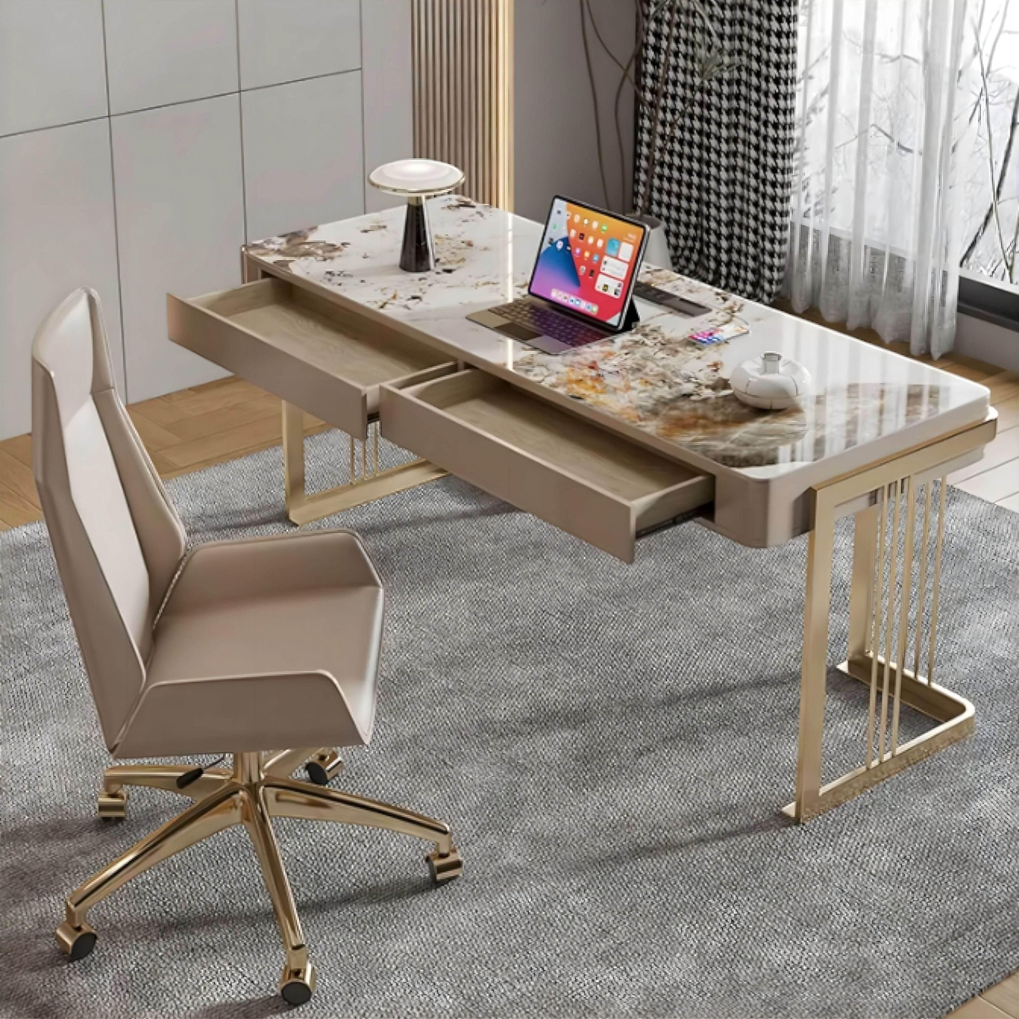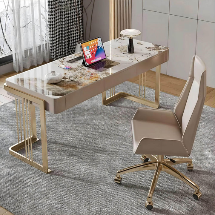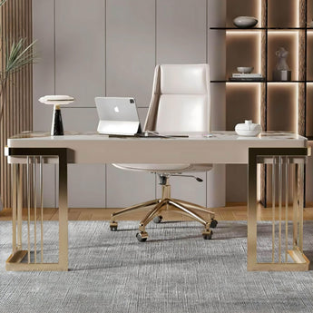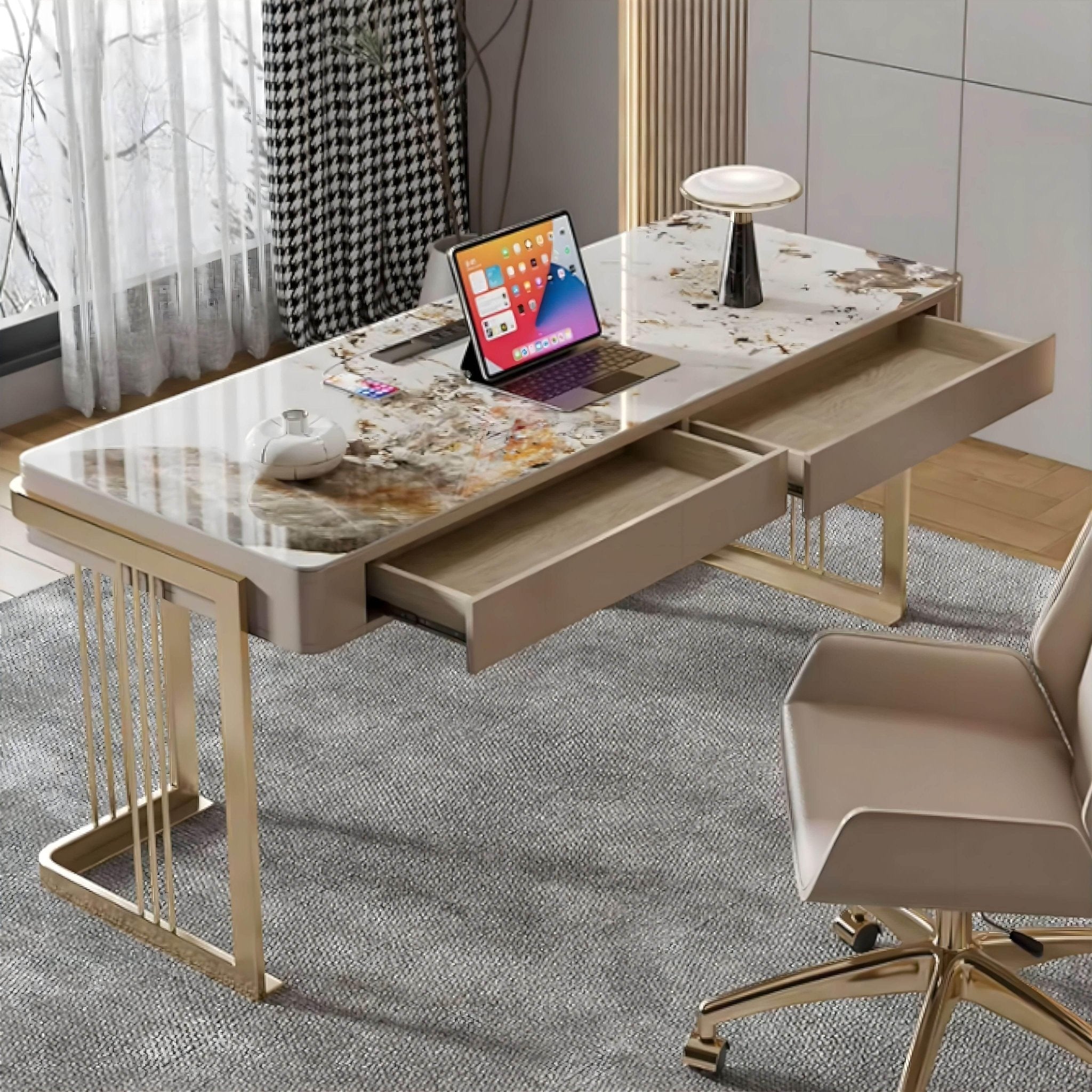 Der Emanuele Schiefer-Schreibtisch verbindet mühelos modernes Design mit praktischer Funktionalität und ist damit die perfekte Wahl für jeden Arbeitsplatz. Mit seinem robusten Metallrahmen und der langlebigen Schiefersteinoberfläche bietet dieser Arbeitsplatz großzügigen Platz für Ihre Arbeitsanforderungen und wertet gleichzeitig Ihr Büro oder Zuhause optisch auf.