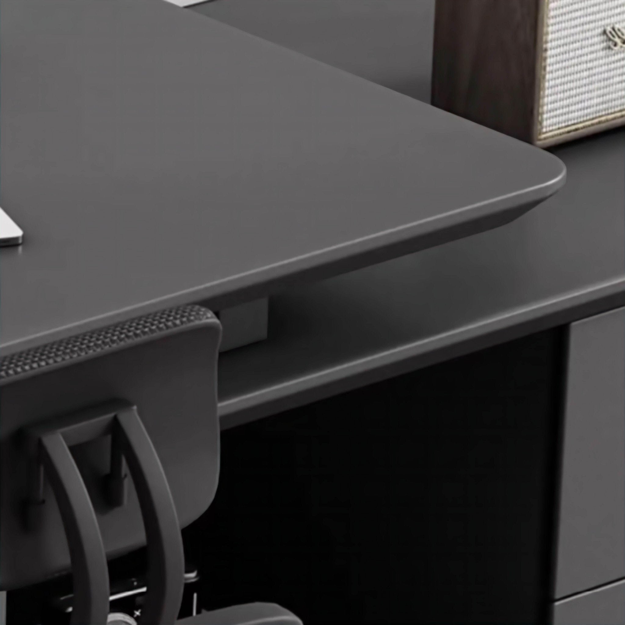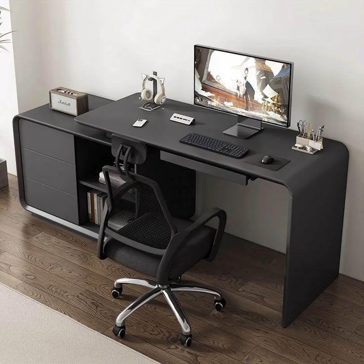 Verwandeln Sie Ihren Arbeitsplatz mit dem Liberato Schreibtisch, der den vielfältigen Anforderungen Ihres Homeoffice gerecht wird. Dieser moderne Schreibtisch verfügt über eine einzigartige Schublade auf der linken Seite, die bemerkenswerte Vielseitigkeit bietet. Die Schublade lässt sich um volle 180 Grad drehen, sodass Sie sie gerade ausziehen oder in L-Form aufstellen können. So können Sie Ihr Schreibtischlayout flexibel an Ihre Arbeitsabläufe anpassen.