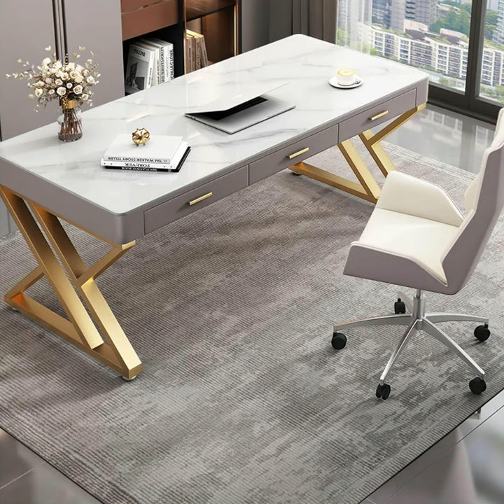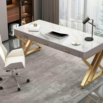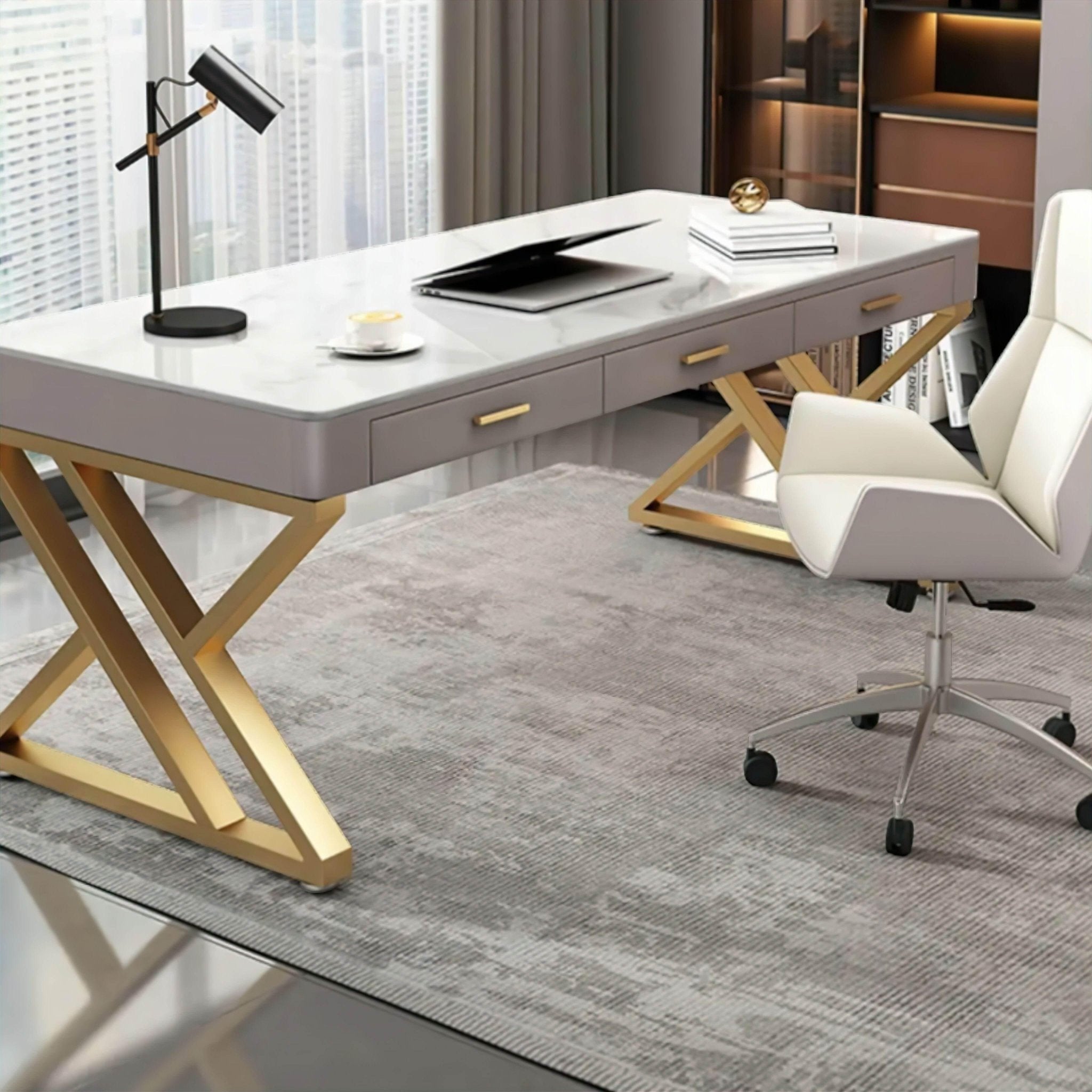 Werten Sie Ihren Arbeitsplatz mit dem Damien Schreibtisch auf – eine perfekte Kombination aus Stil und Funktionalität. Mit seiner eleganten Schieferplatte strahlt dieser moderne Schreibtisch Eleganz aus, während die eleganten, goldfarbenen Eisenbeine zuverlässigen Halt bieten. Das moderne Design des Damien Schreibtischs wertet Ihre Büroumgebung auf und vereint Ästhetik und Funktionalität. Dieses langlebige Möbelstück ist für den täglichen Gebrauch konzipiert und somit die ideale Ergänzung für alle, die Produktivität mit Stil verbinden möchten. Verwandeln Sie Ihren Arbeitsplatz mit diesem formschönen Schreibtisch, der Eleganz und Alltagstauglichkeit perfekt vereint. Entdecken Sie weitere praktische Lösungen für Ihr Zuhause bei Decor [http://www.decorofficial.com/].