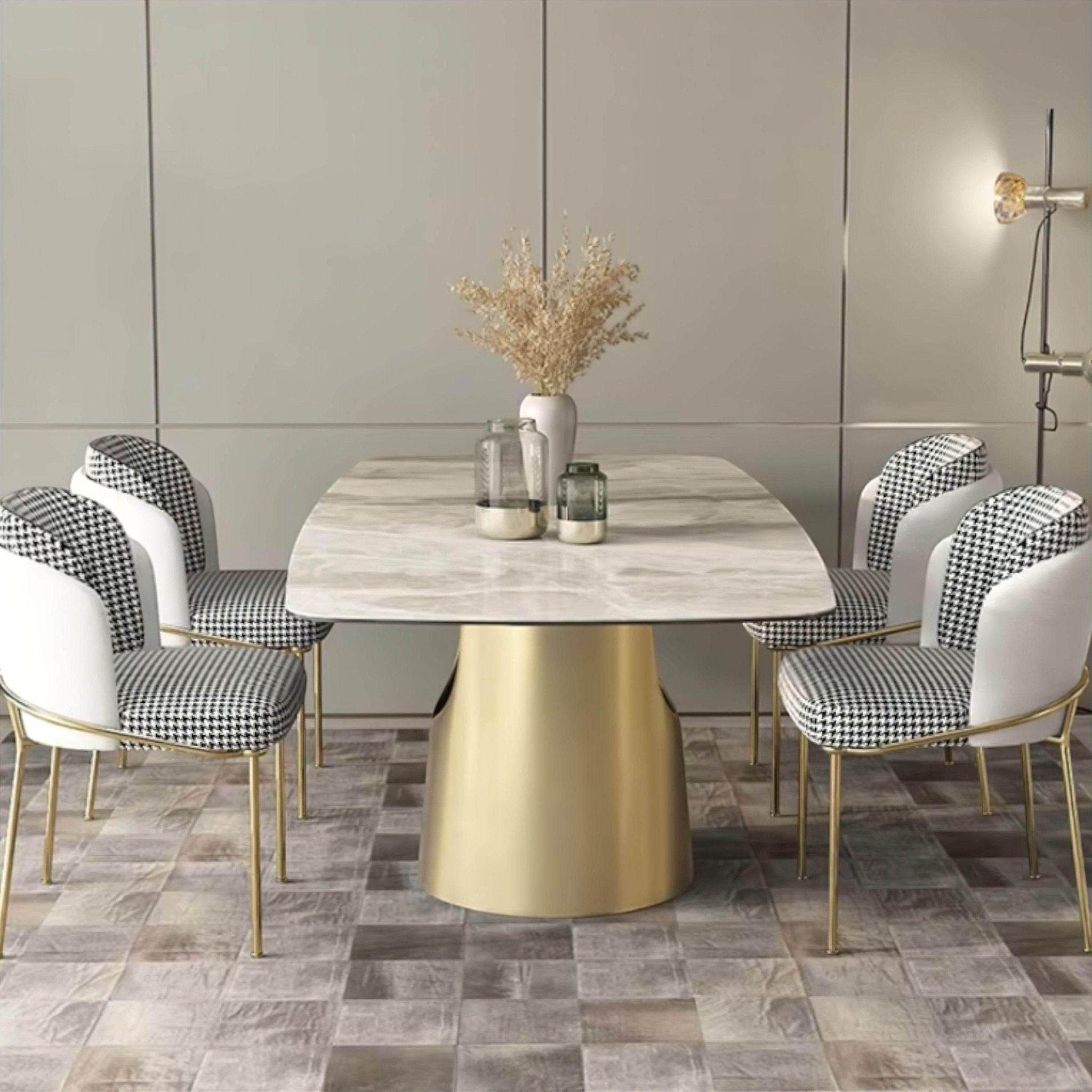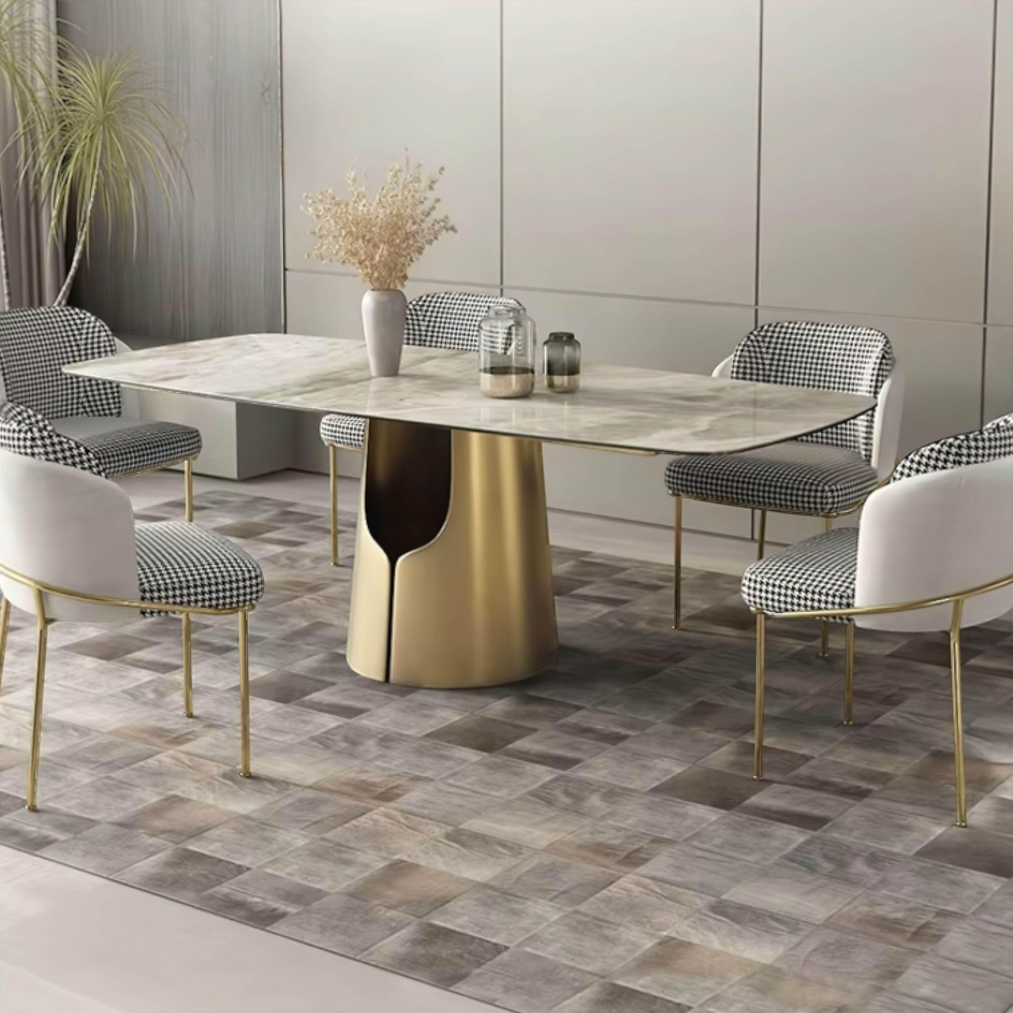 Die elegante vergoldete Kante am Fuß unterstreicht seinen edlen Look und verleiht ihm einen Hauch von Glamour, der diesen Tisch zum idealen Mittelpunkt für gemütliche Abendessen und gemütliche Zusammenkünfte macht. Der Esstisch Roberta Slate fügt sich nahtlos in jeden modernen Essbereich ein und macht Ihre Mahlzeiten zu unvergesslichen Momenten. Erleben Sie die perfekte Kombination aus Stil und Funktionalität mit diesem bemerkenswerten Möbelstück für Ihr Zuhause.