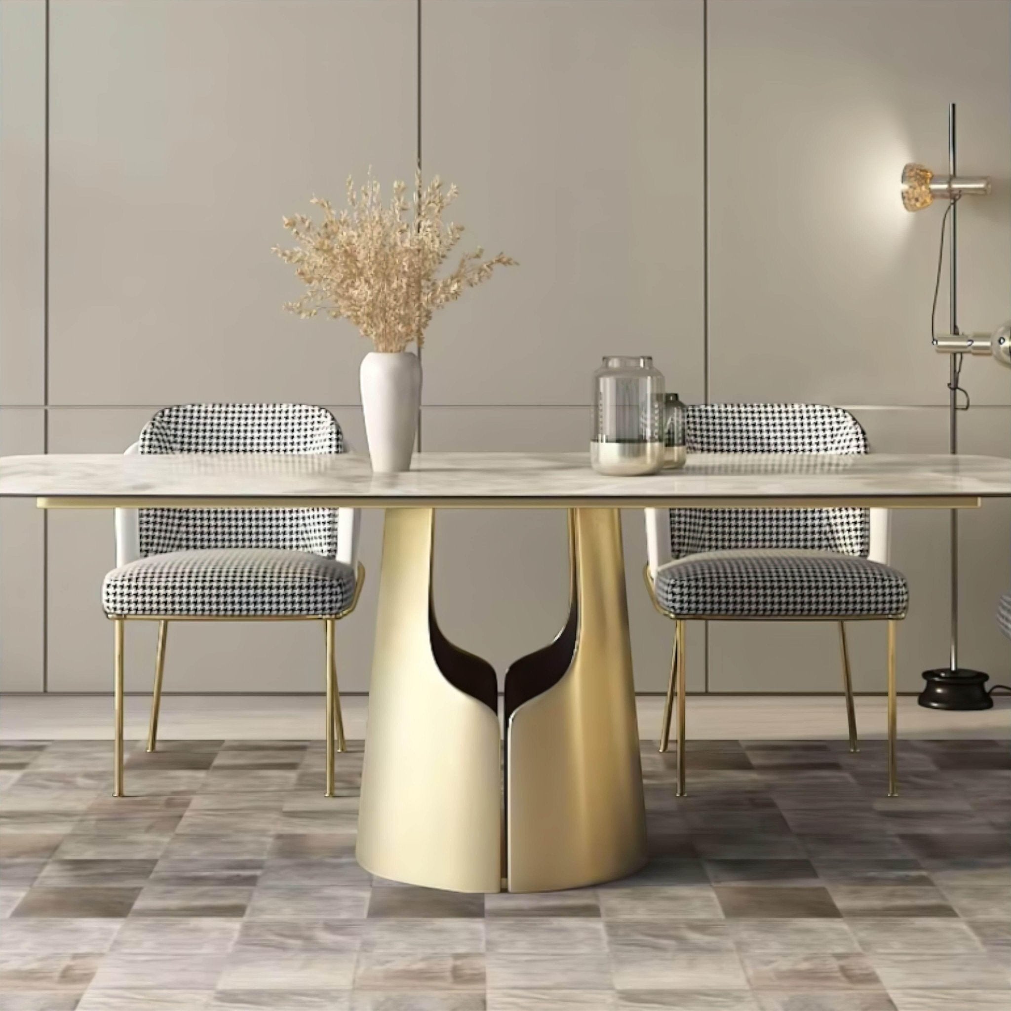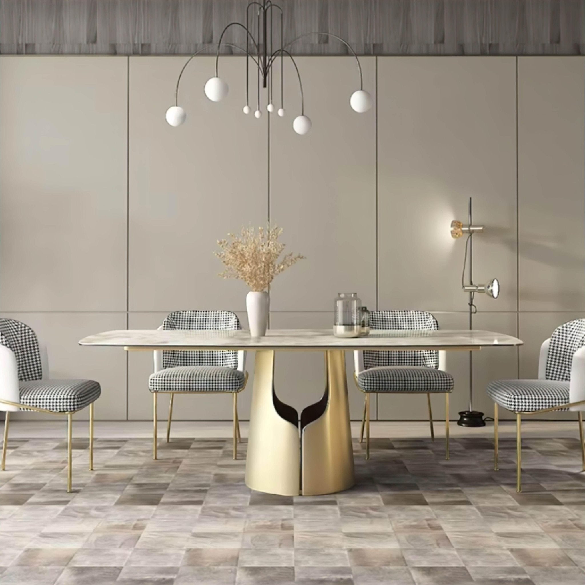 Veredeln Sie Ihr Esserlebnis mit dem Roberta Slate Esstisch, einem meisterhaft gefertigten Stück, das moderne Ästhetik mit praktischer Funktionalität verbindet. Dieser atemberaubende Tisch besticht durch seine elegante Schieferplatte, die nicht nur einen Hauch von Eleganz verleiht, sondern auch Langlebigkeit für den täglichen Gebrauch verspricht. Die robusten Edelstahlbeine sorgen für zuverlässige Stabilität und machen ihn zu einer vielseitigen Ergänzung für jeden Essbereich.