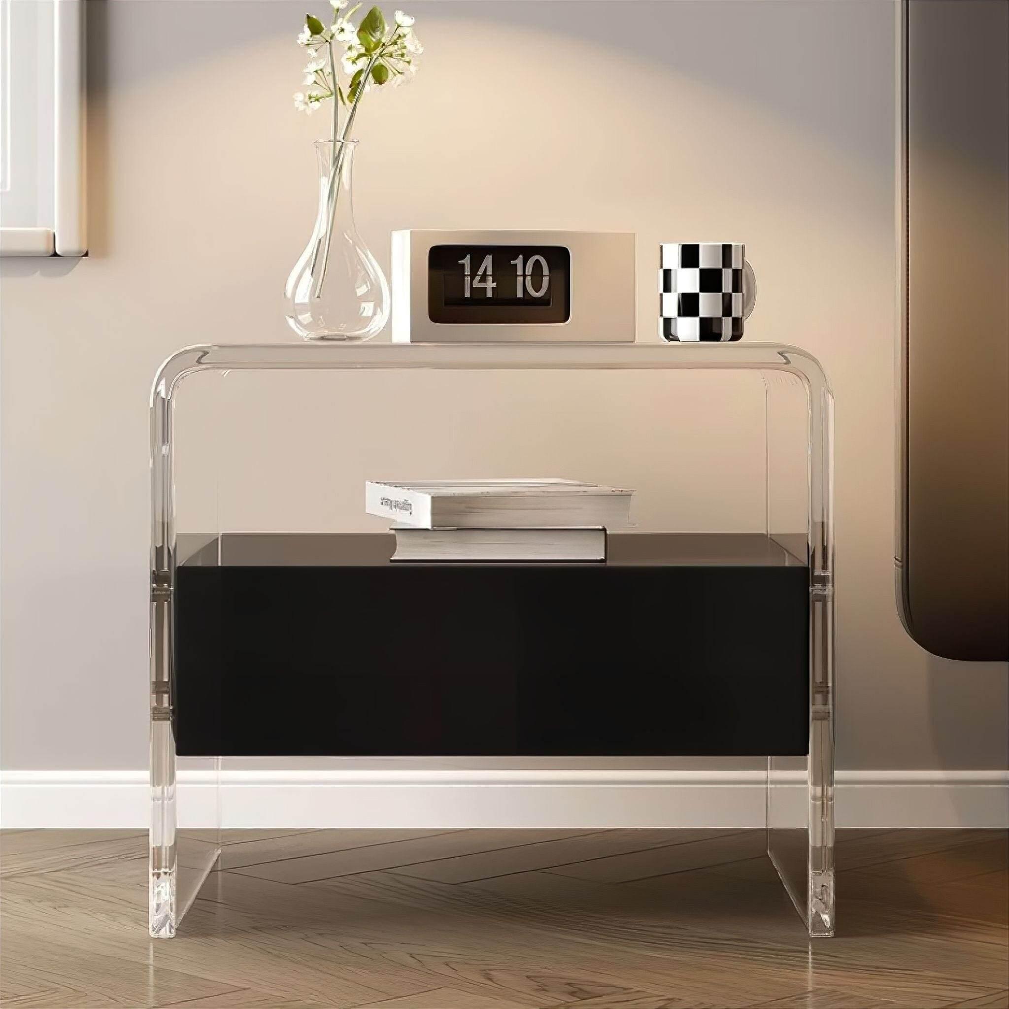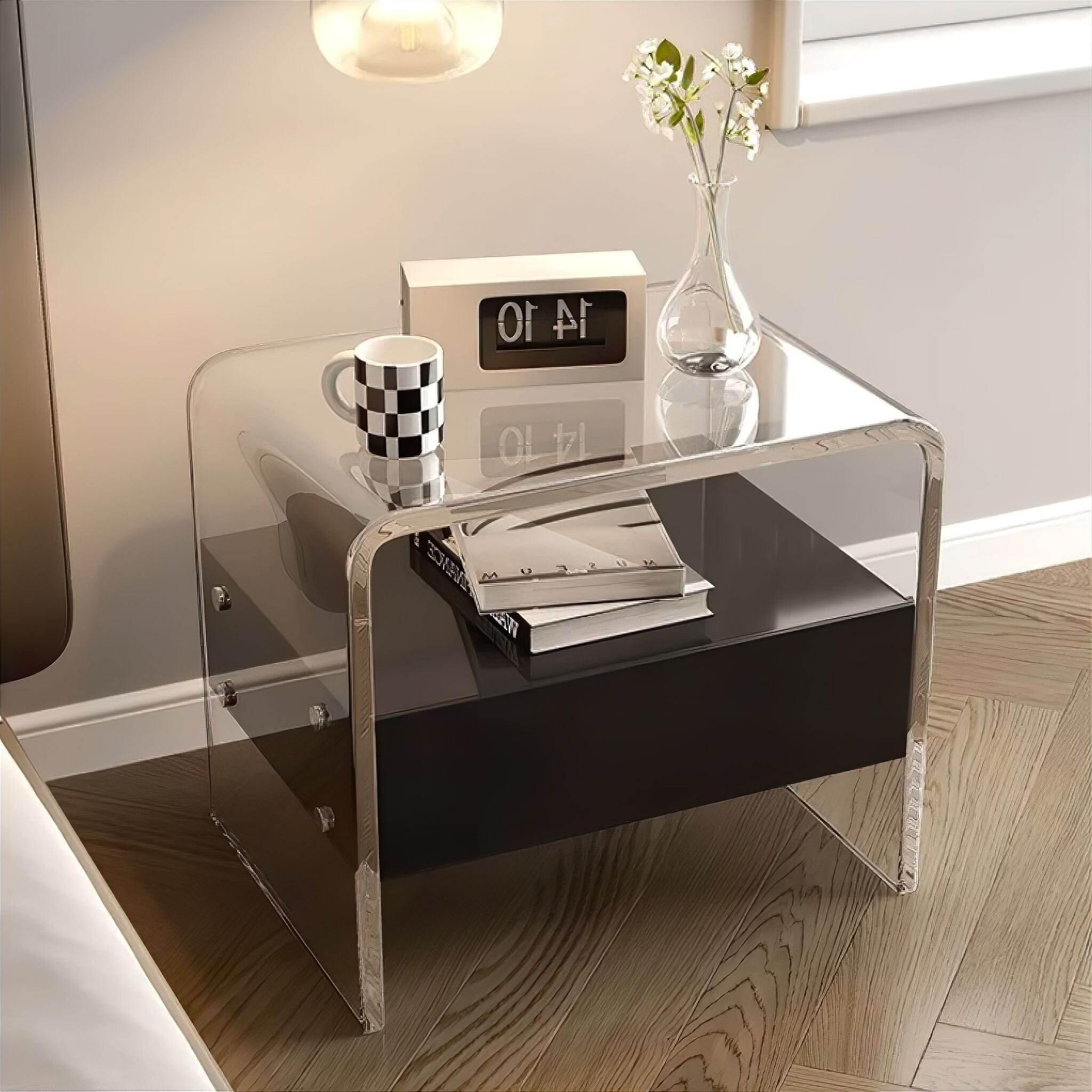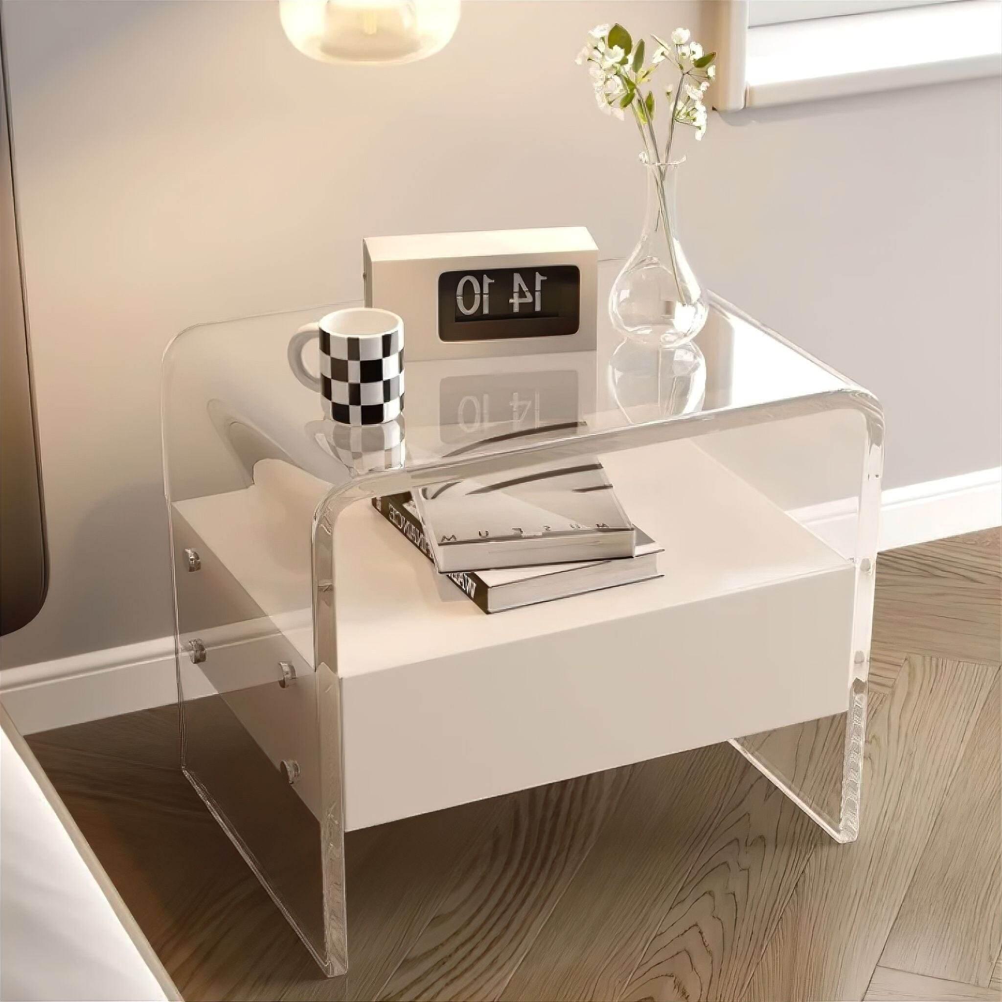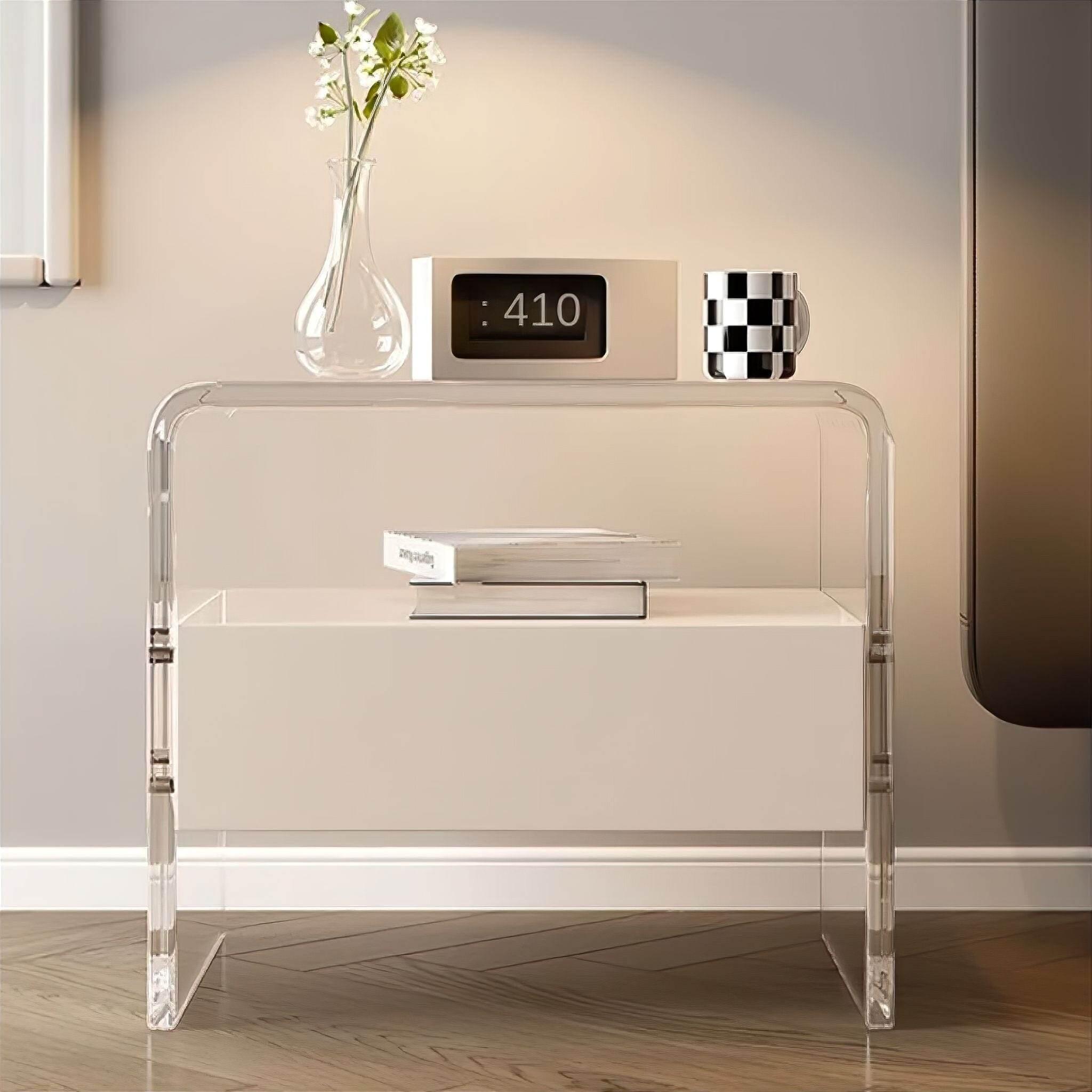 Entdecken Sie den Yasmine Nachttisch – eine außergewöhnliche Kombination aus modernem Design und Luxus. Dieser Nachttisch verfügt über eine Schublade mit Soft-Close-Funktion, die für einen sanften und leisen Betrieb sorgt und Ihnen die Möglichkeit bietet, Ihre wichtigsten Utensilien diskret zu verstauen. Die eleganten, geschwungenen Beine aus transparentem Acryl verleihen dem Yasmine Nachttisch eine besondere Note und unterstreichen seine Eleganz. Er ist eine echte Bereicherung für jedes Schlafzimmer. Mit seinem stilvollen Design und dem praktischen Stauraum vereint dieser Nachttisch Funktionalität und Ästhetik und verleiht Ihrem Schlafzimmer einen edlen Charme.