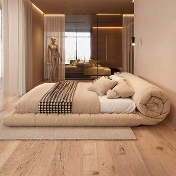 Experience the Grazia Luxury Bed, where opulence meets comfort to elevate your sleeping environment. Crafted from soft technical fabric and filled with a carefully balanced combination of silk and cotton, this bed provides a delightful sleeping experience that promotes relaxation. The elegantly rolled headboard serves as a striking focal point, enhancing the visual appeal of your bedroom while creating an inviting atmosphere.