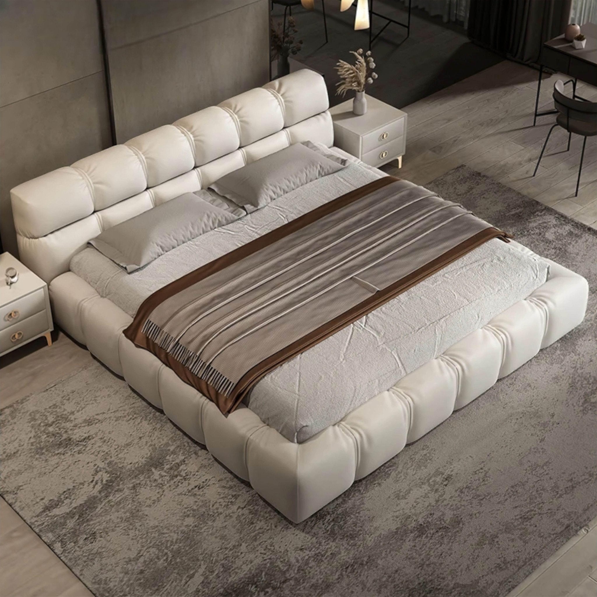 The bed’s distinctive square bubble-like stitched sections add an appealing visual interest, creating a unique charm that elevates the aesthetic of any modern bedroom. With the Wilfred Bed, you can embrace a stylish statement piece that perfectly balances elegance and practicality, reimagining the essence of contemporary living.