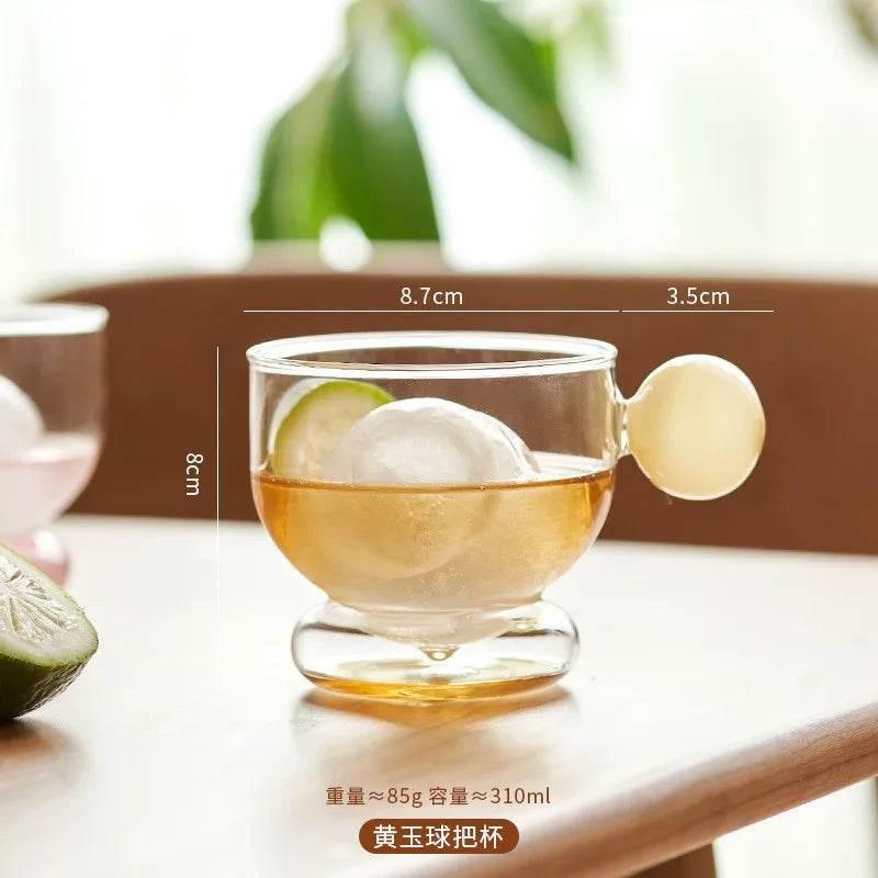 Glass Coffee Mug with Spherical Handle - 310ml