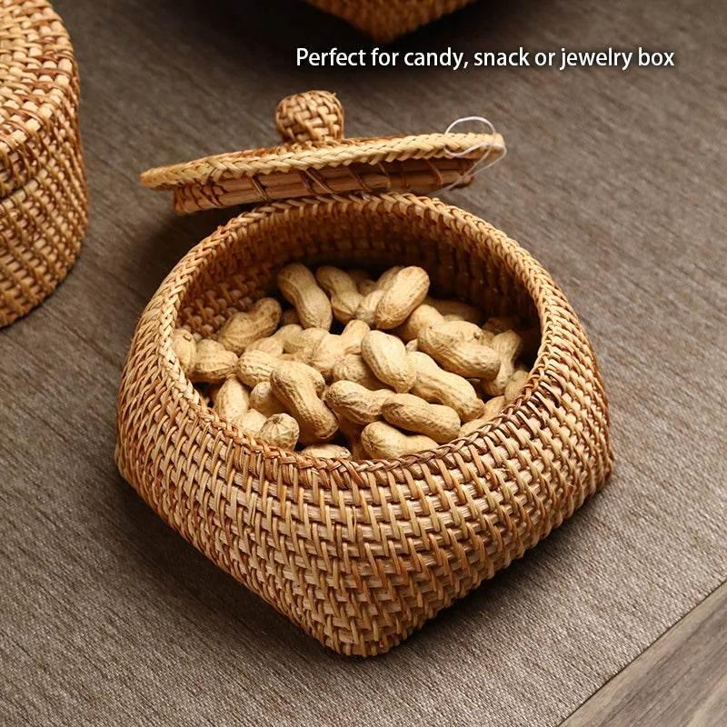 Rattan Storage Box - Kitchen Organizer Snack Container