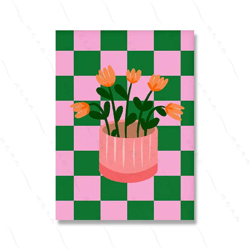 - Art Style: Trendy, abstract, and eclectic design with vibrant hot pink and colorful elements.