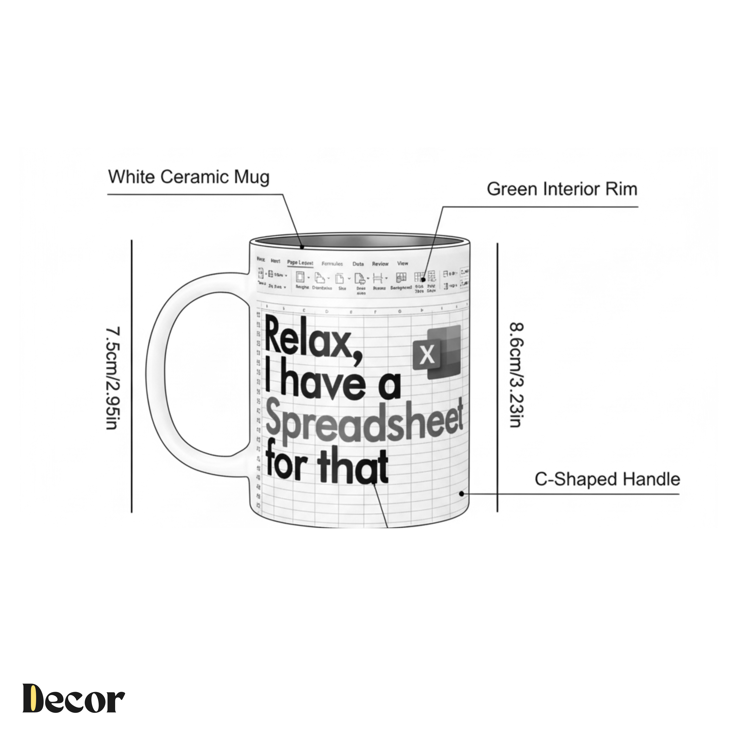 Excel Pattern Ceramic Mug – Creative Spreadsheet Coffee & Tea Cup