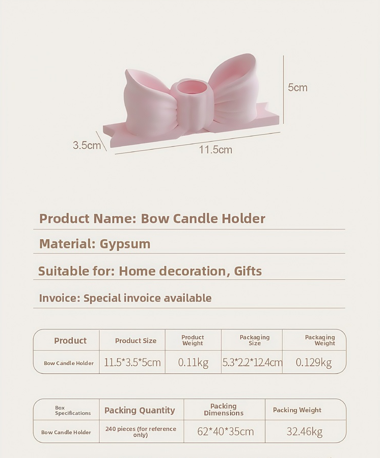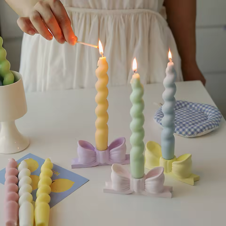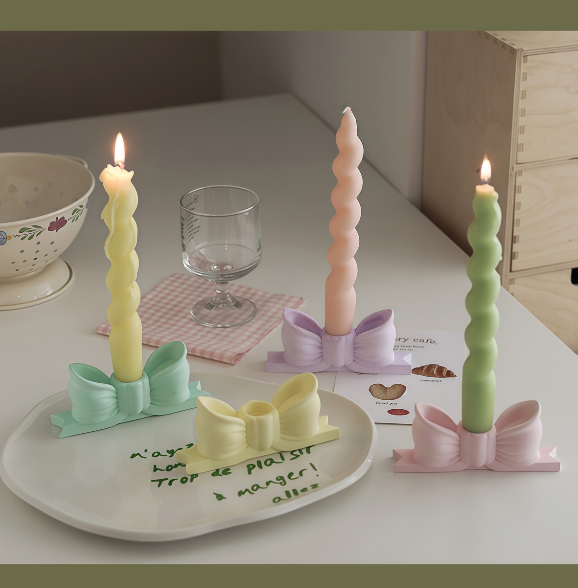 Pastel Bow Candle Holder for Birthday Celebration Decor