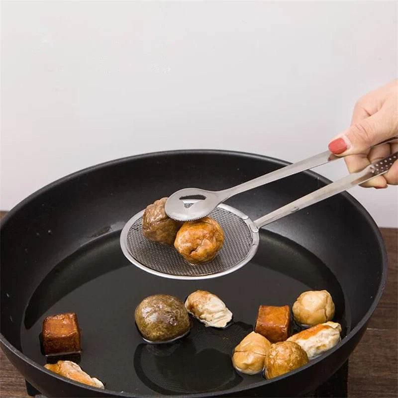 Stainless Steel Filter Spoon Tongs - Kitchen Tools for Frying and BBQ