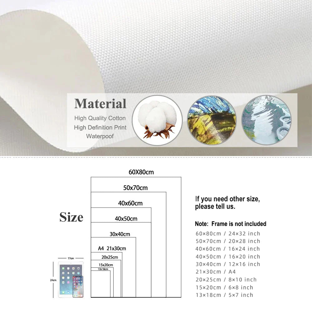 - Size: Available in multiple size options – 15×20 cm, 21×30 cm, 30×40 cm, 40×50 cm, 50×70 cm – perfect for various wall spaces.