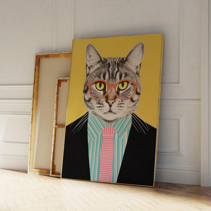 Apportez une touche d'humour et de modernité à votre intérieur avec cette décoration murale représentant un chat en costume jaune . Ornée d'une illustration originale d'un chat vêtu d'un élégant costume jaune, elle est idéale pour les salons, les chambres, les bureaux ou tout espace créatif appréciant une décoration ludique et unique.
