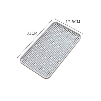 Featuring a hollow grid design, the upper layer maintains an elevated position above the water-collecting lower layer. This thoughtful construction not only promotes drainage but also keeps your kitchen tidy and organized. Versatile in its use, this dish drainer tray serves multiple purposes — utilize it for draining vegetables and fruits, drying dishes, or as a stylish tea tray.