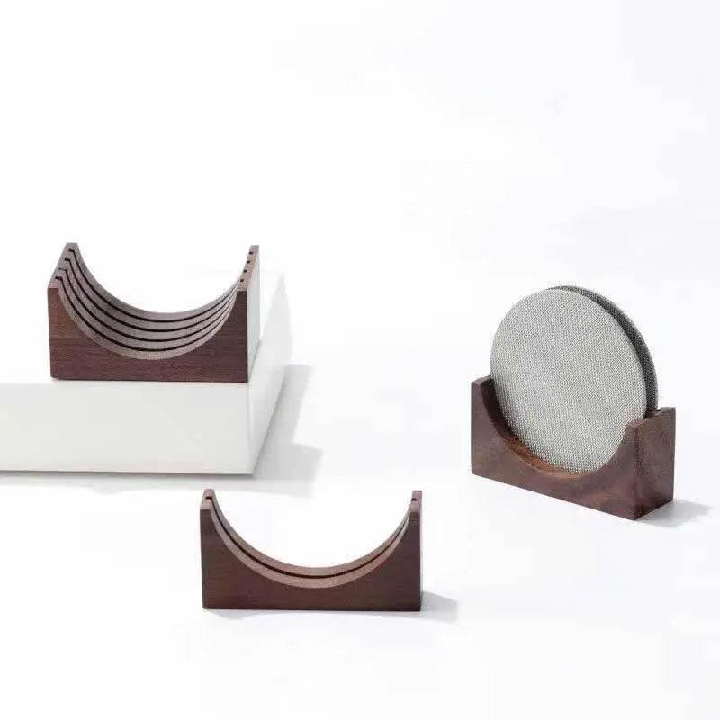 Enhance your coffee-making experience with this elegantly designed espresso puck screen stand, meticulously crafted from rich walnut wood. This stylish holder accommodates 51mm, 53mm, and 58mm portafilter puck screens, seamlessly merging functionality with aesthetic appeal for your espresso preparations.