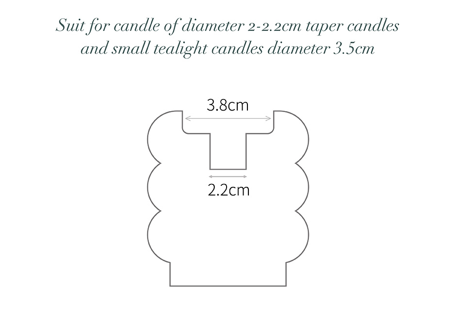 • Dual Use: For taper candles (Ø 2–2.2cm / 1in) or tealights (Ø 3.5cm)