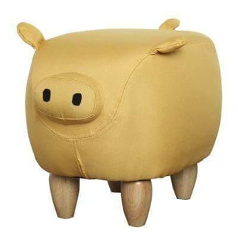 The ottoman arrives unassembled to facilitate easy transportation and boasts a reliable scaffold structure that ensures solid support. Its soft fabric veneer in a neutral color adds a sense of elegance, while the playful pig pattern introduces a touch of whimsy, particularly appealing to children.