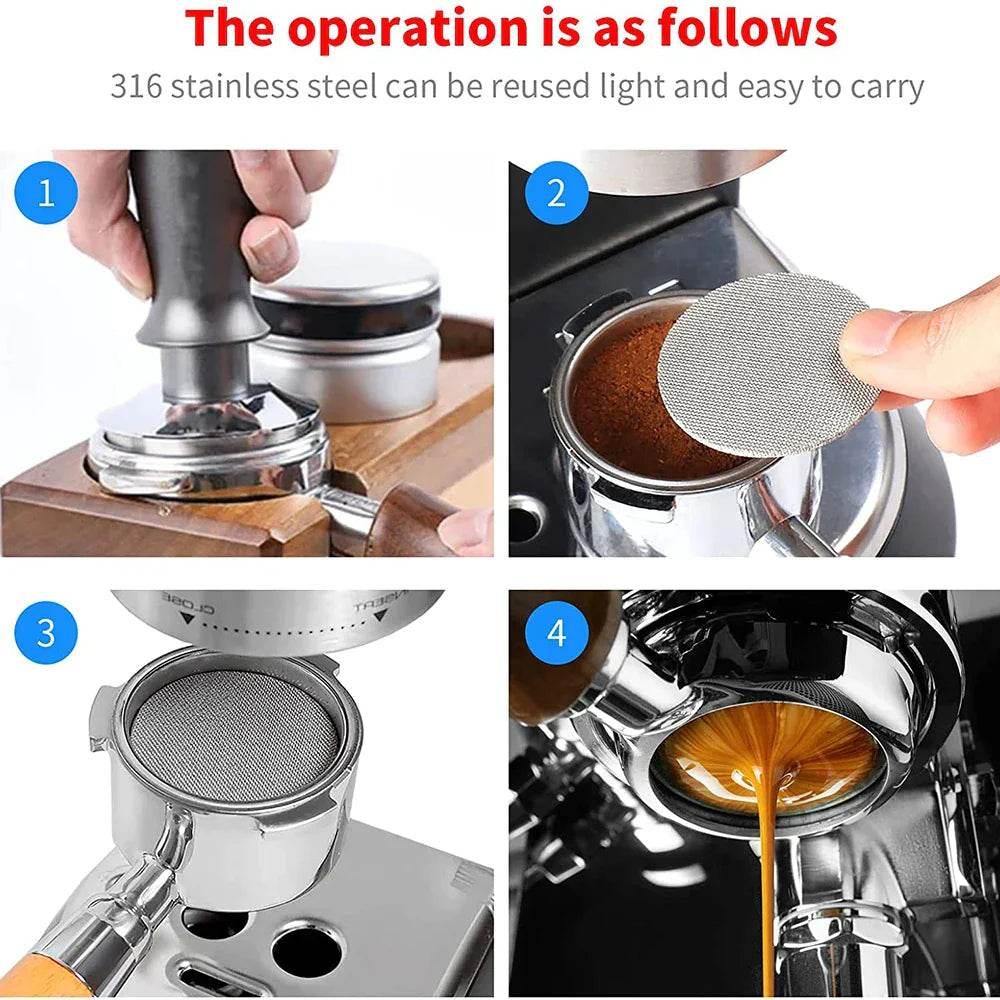 Enhance your coffee-making skills with the Stainless Steel Espresso Puck Screen and enjoy the satisfaction of brewing café-quality espresso at home. Immerse yourself in the captivating world of freshly brewed espresso and unlock your potential as a true coffee connoisseur.